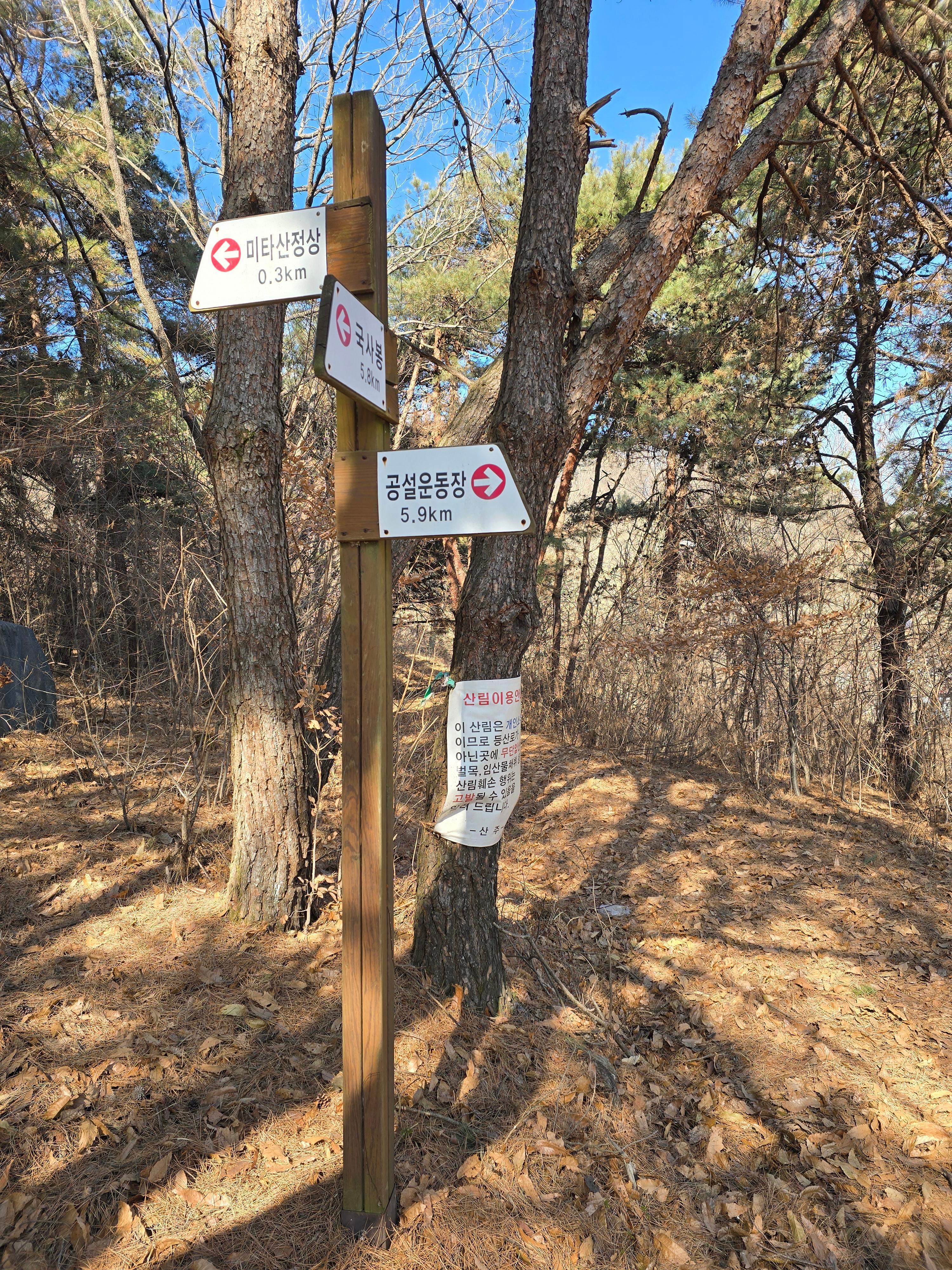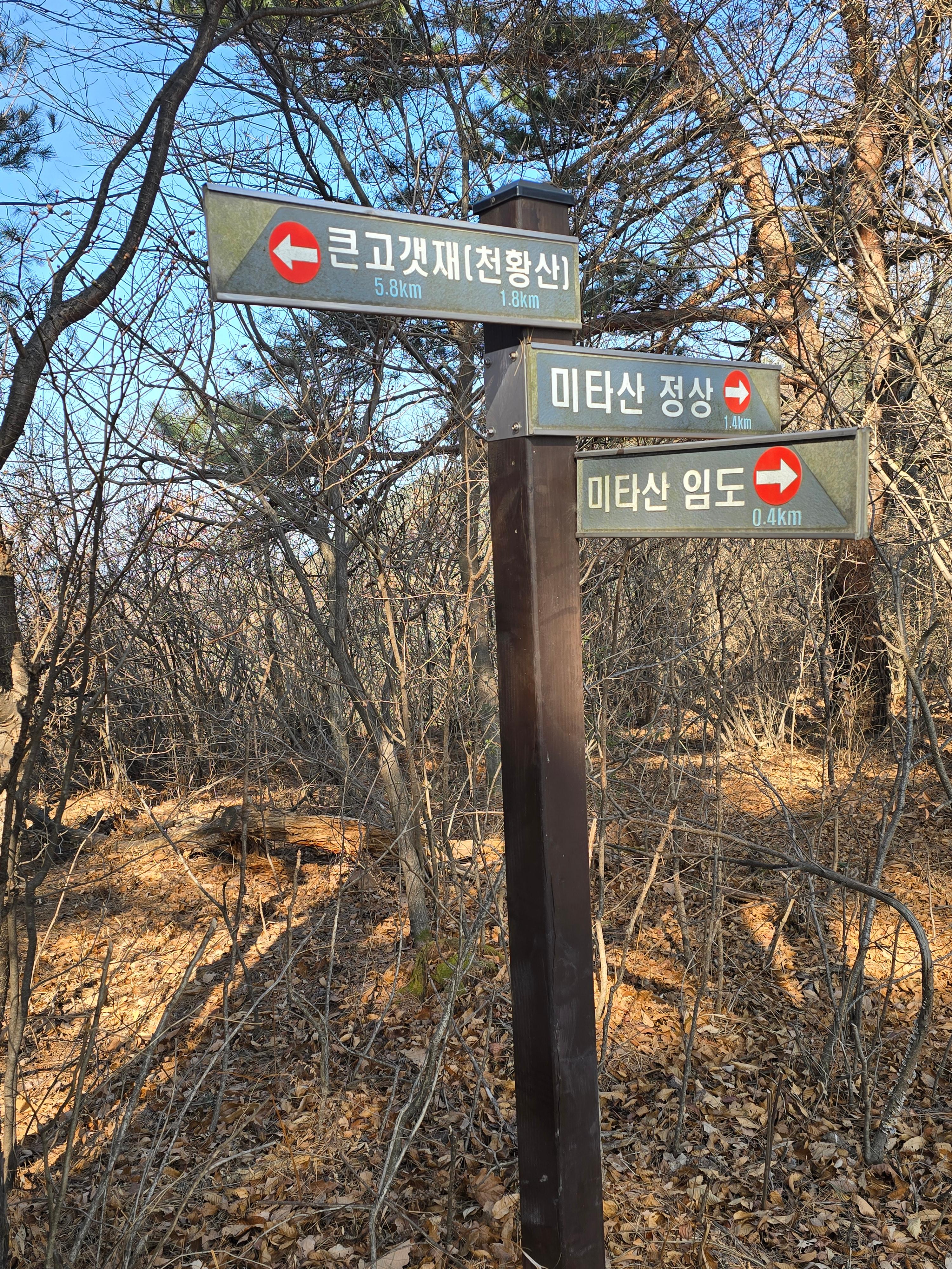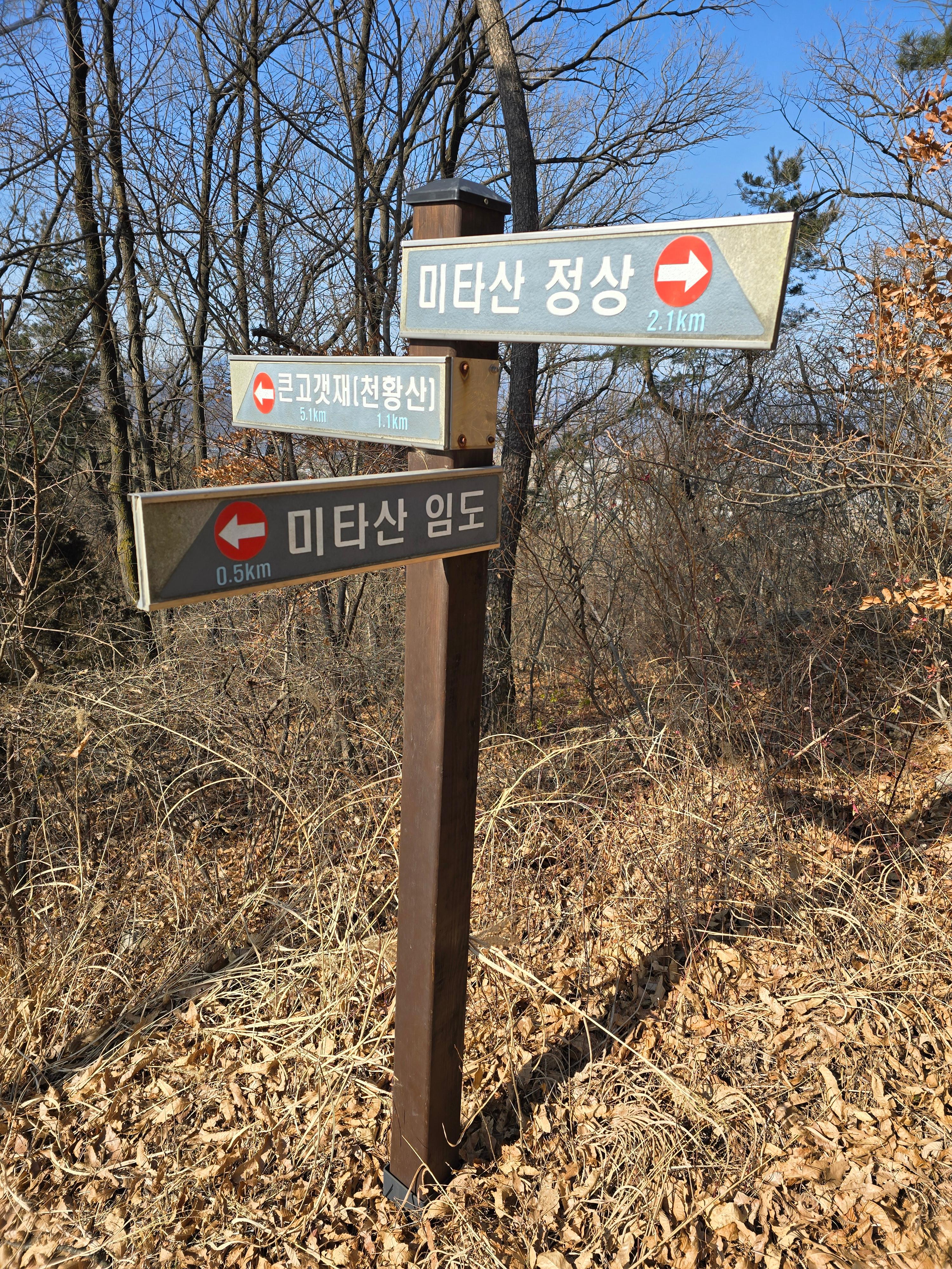 또 다른 미타산 임도 갈림길의 옛 이정표,