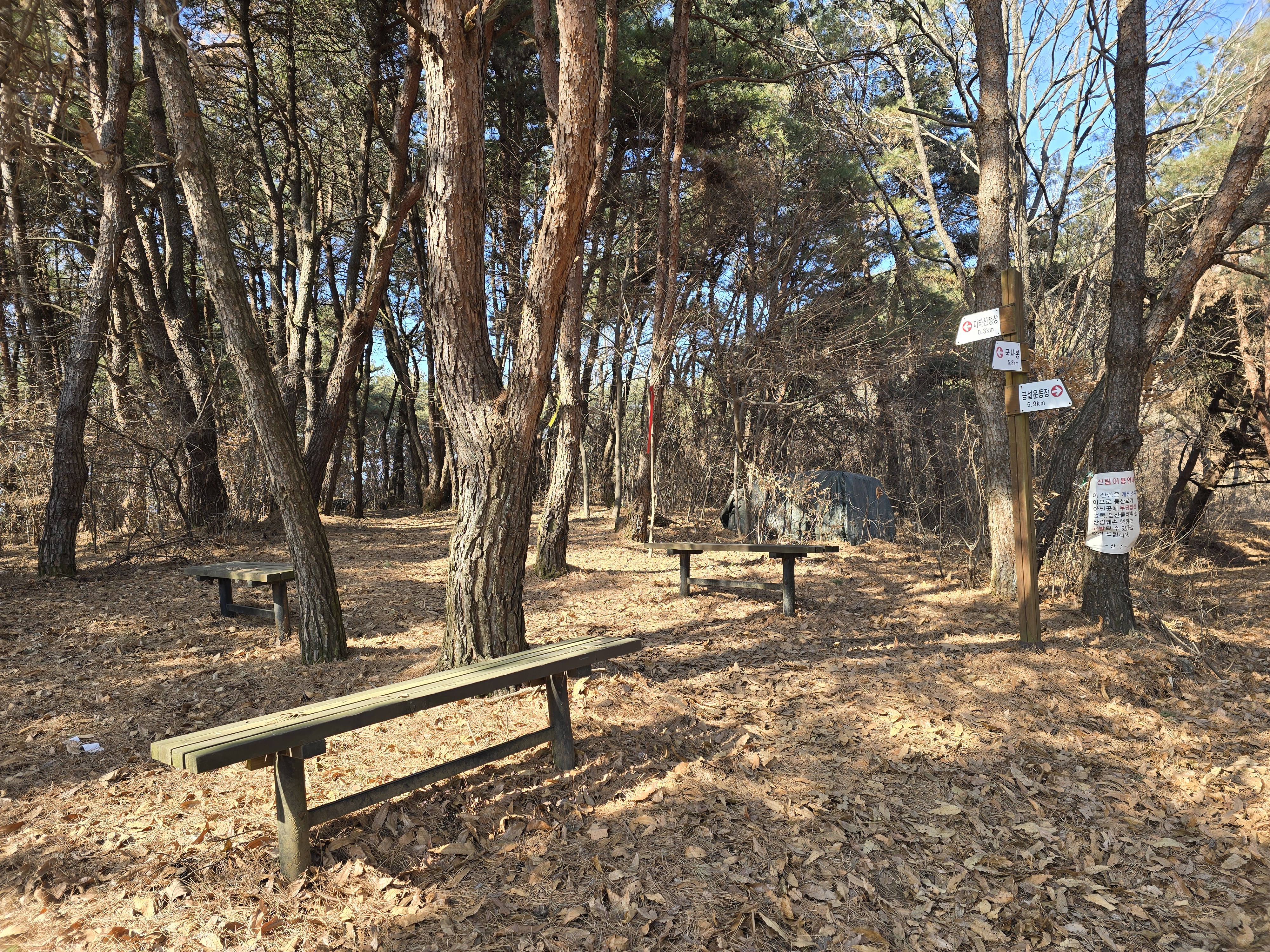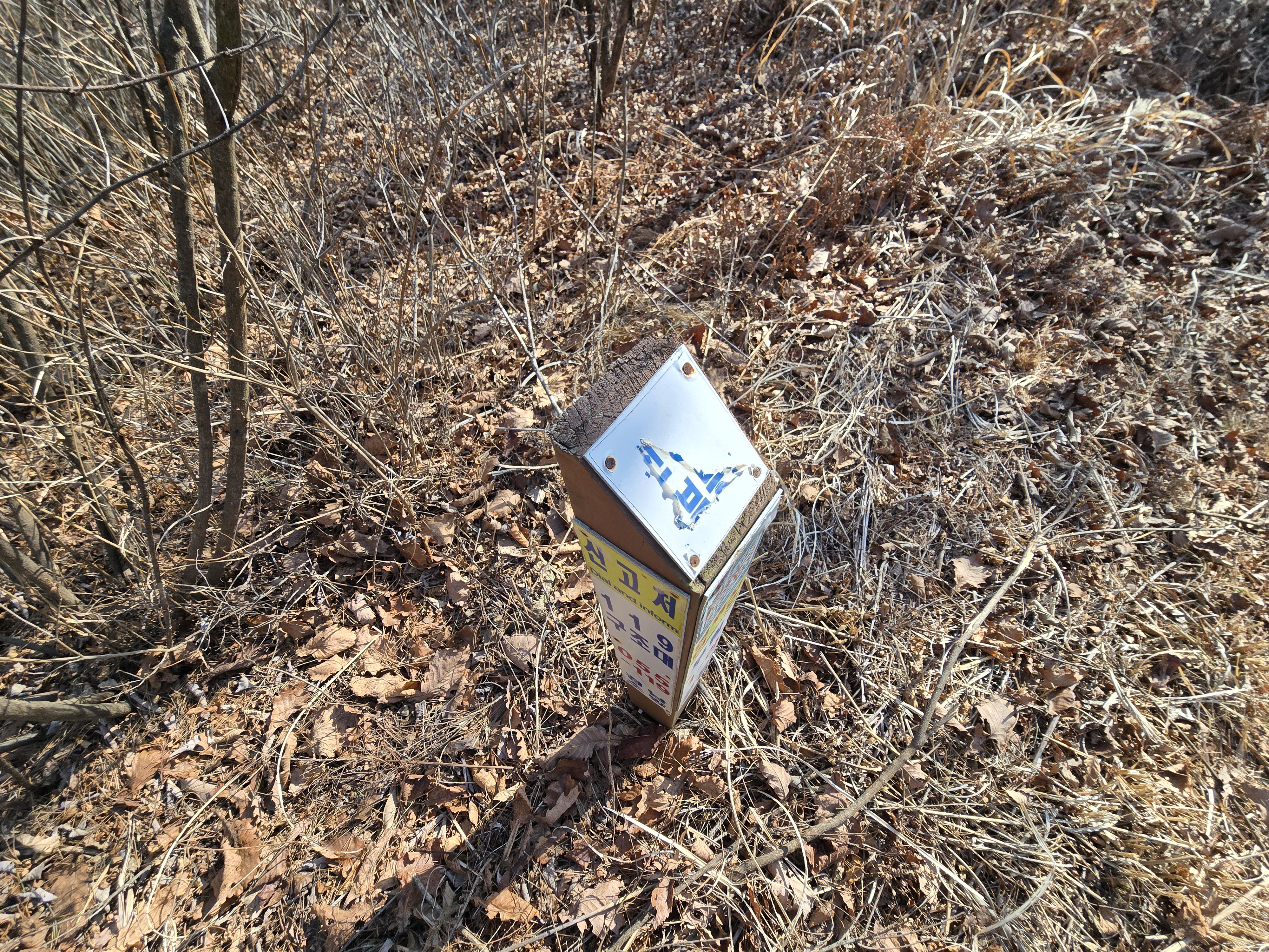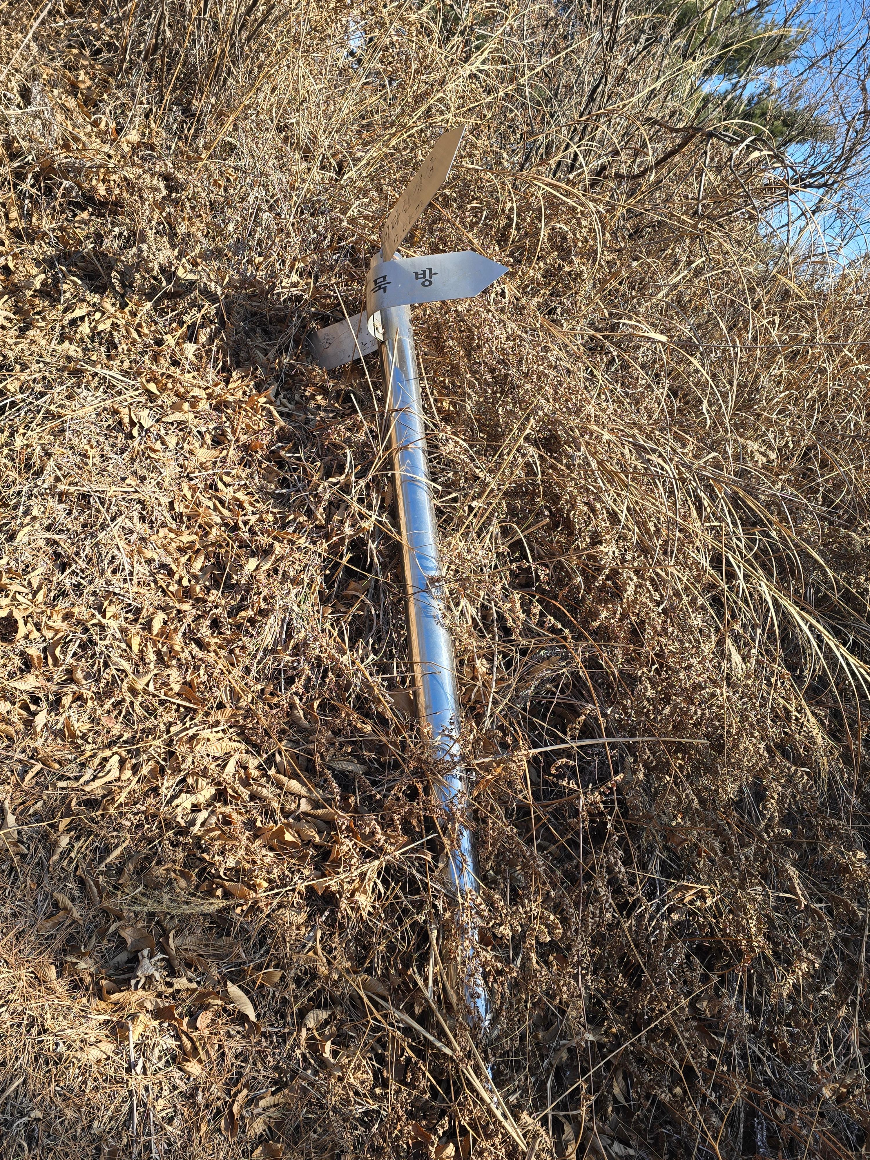 또 다른 미타산 임도 갈림길의 옛 이정표,