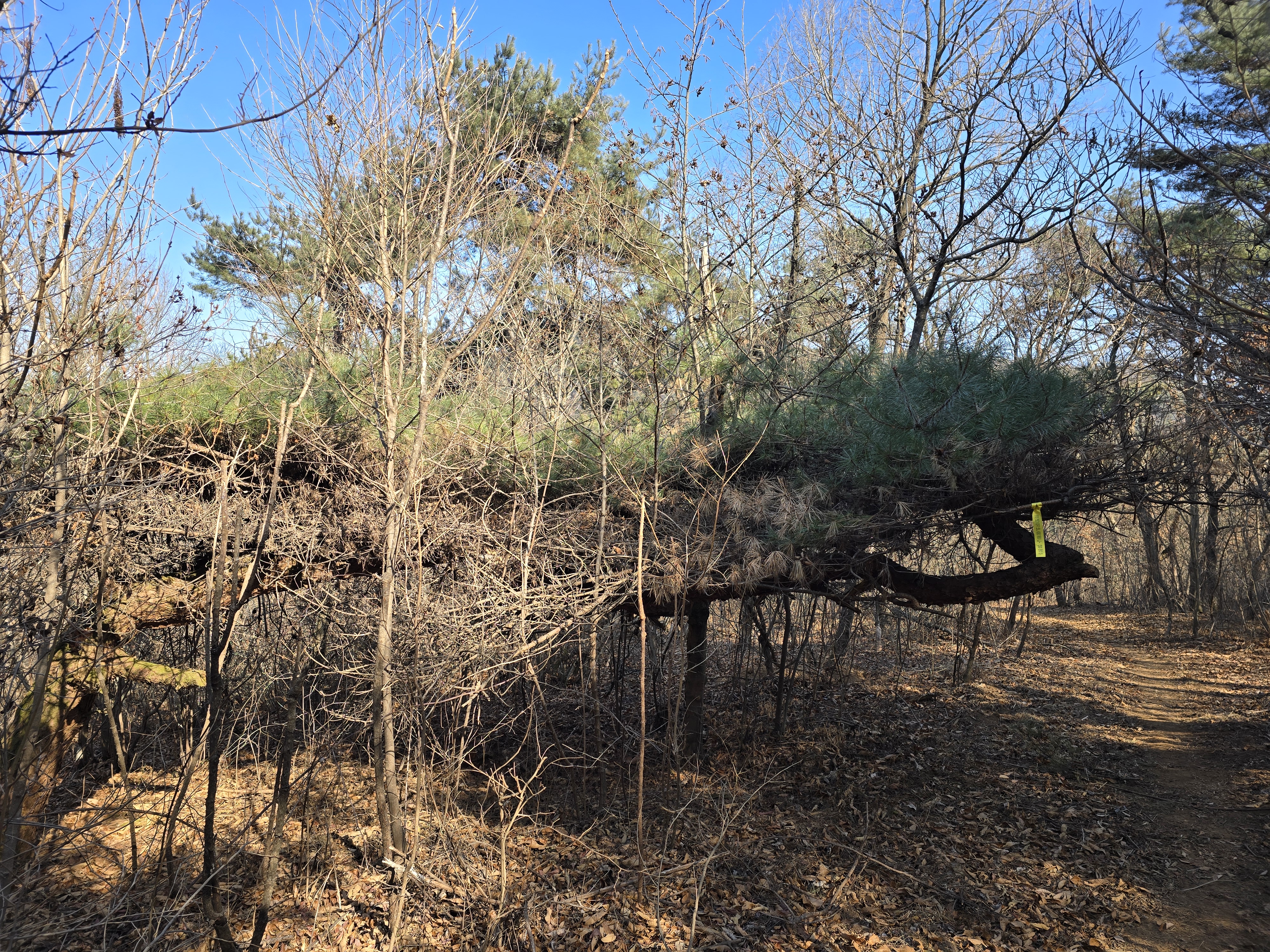 멋지게 퍼진 소나무인데 자리를 잘못 잡았다고나?