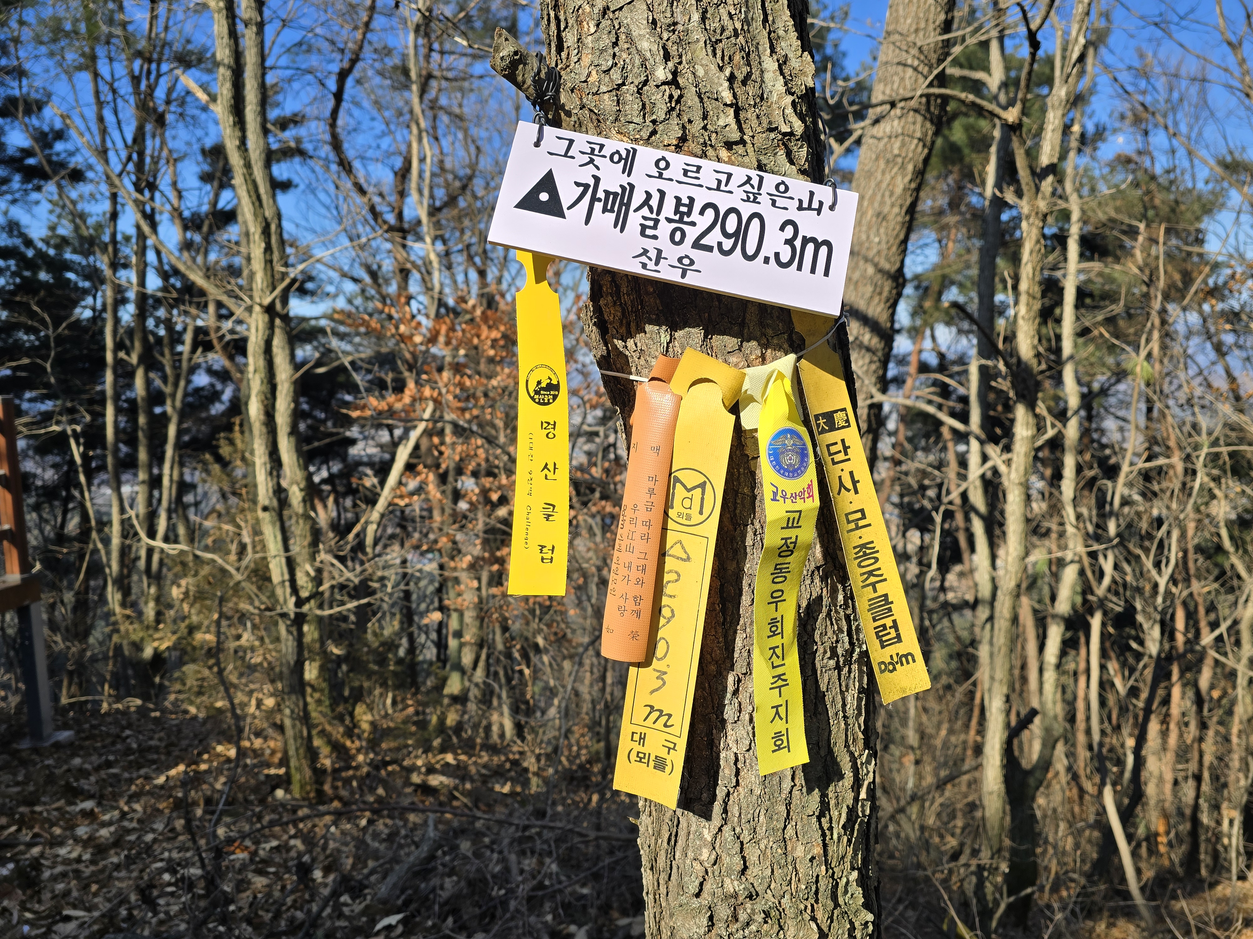 다시 삼각점과 덱 쉼터가 있는 가매실봉(290.3m)을 넘어간다.
