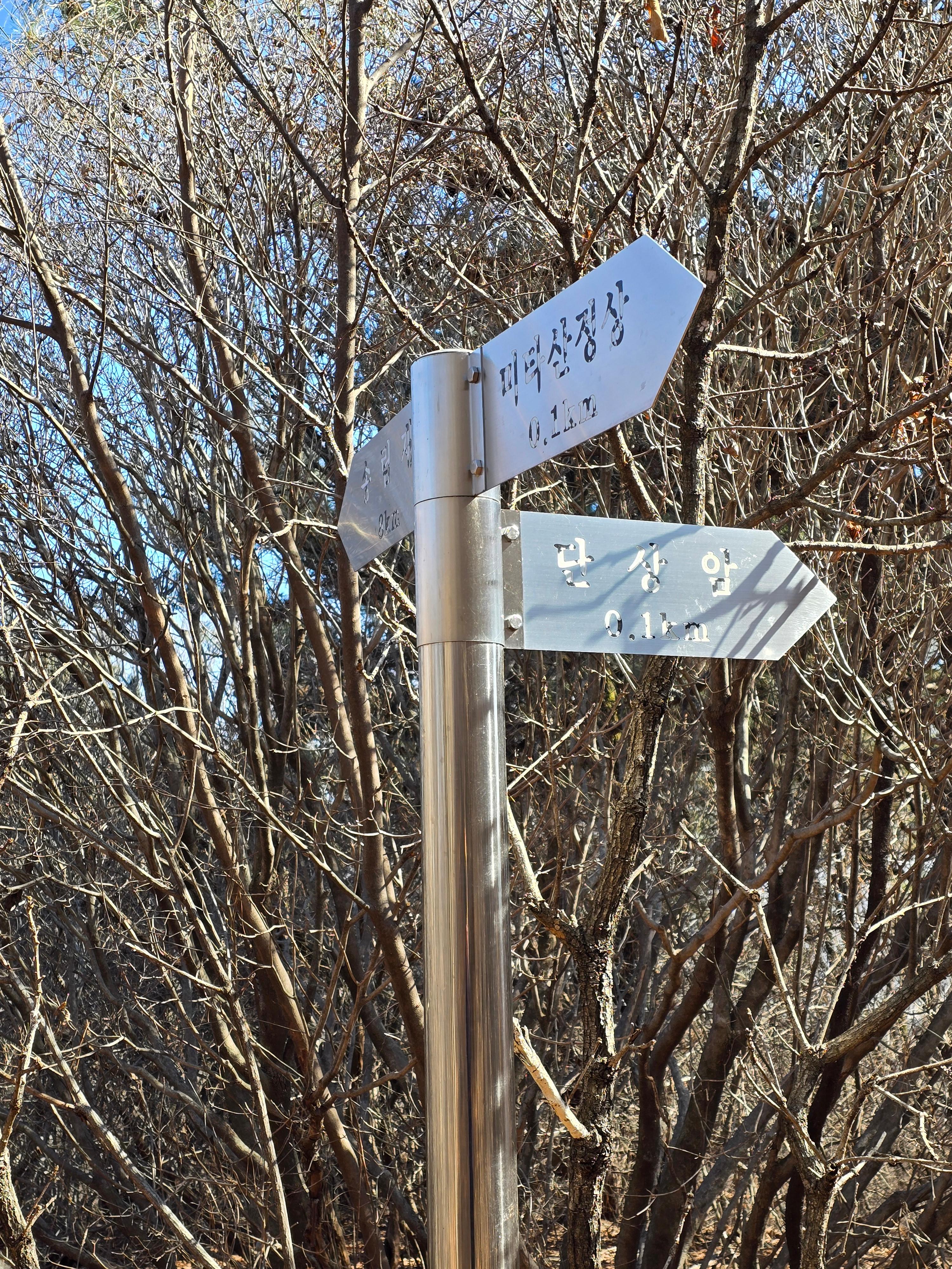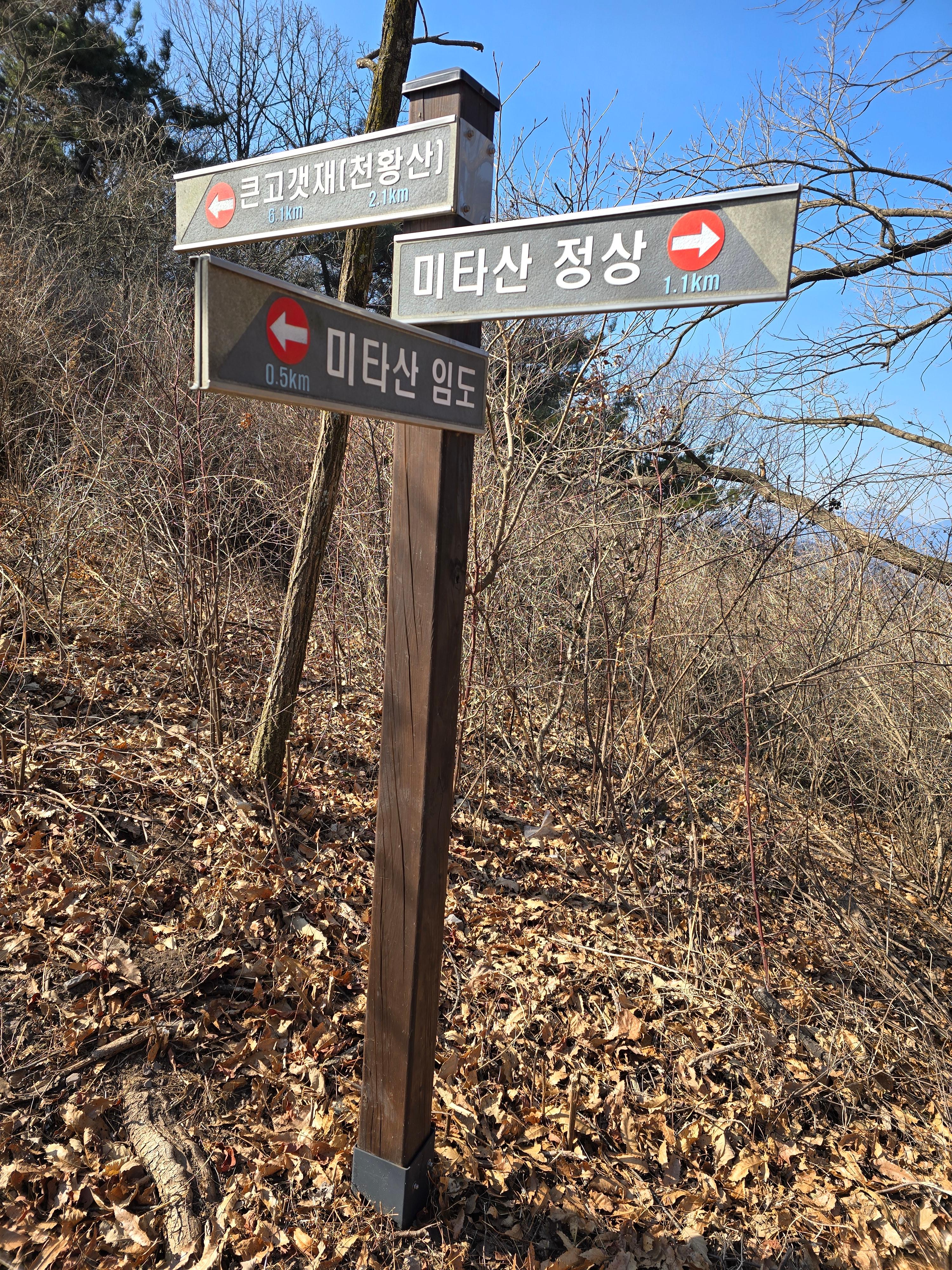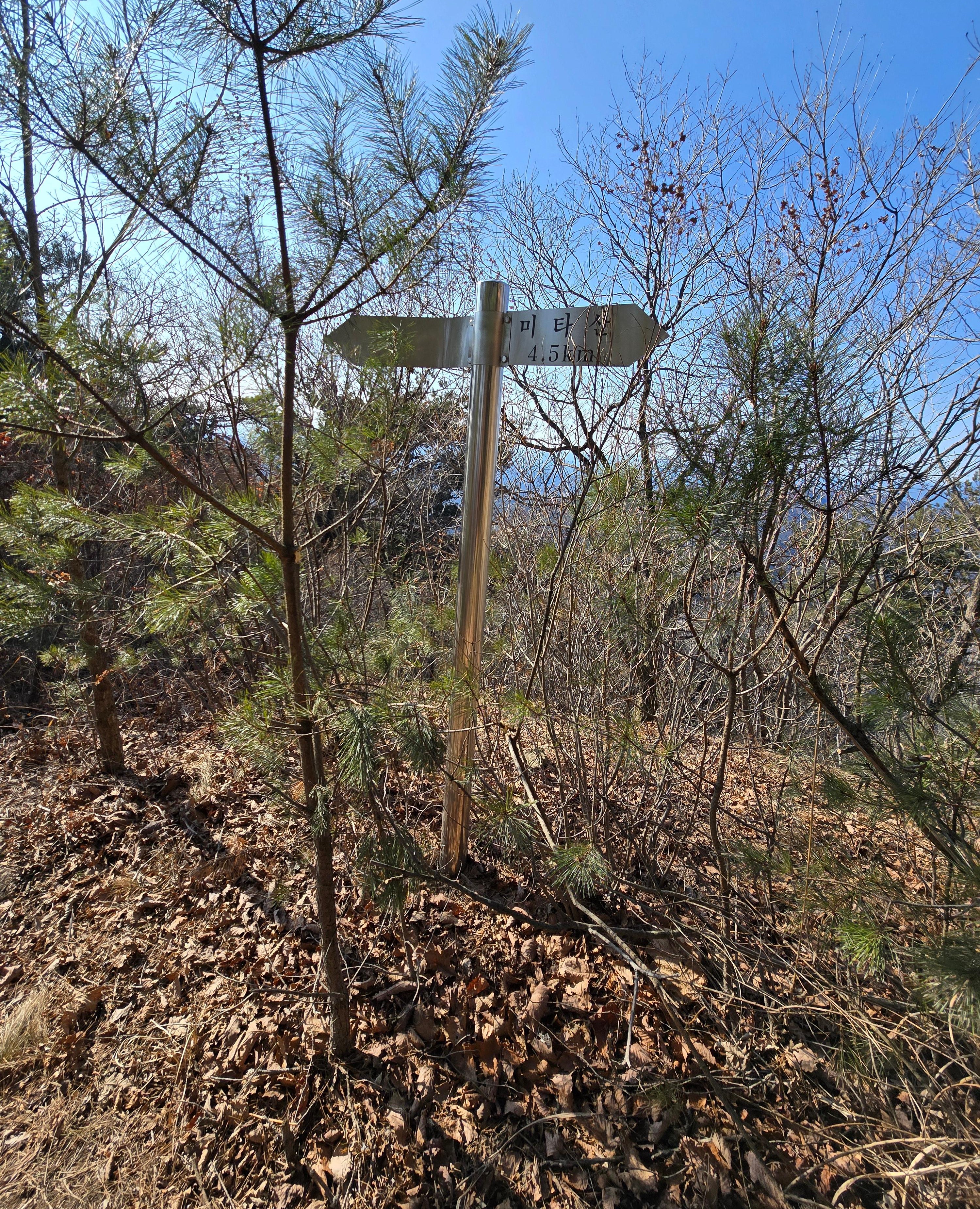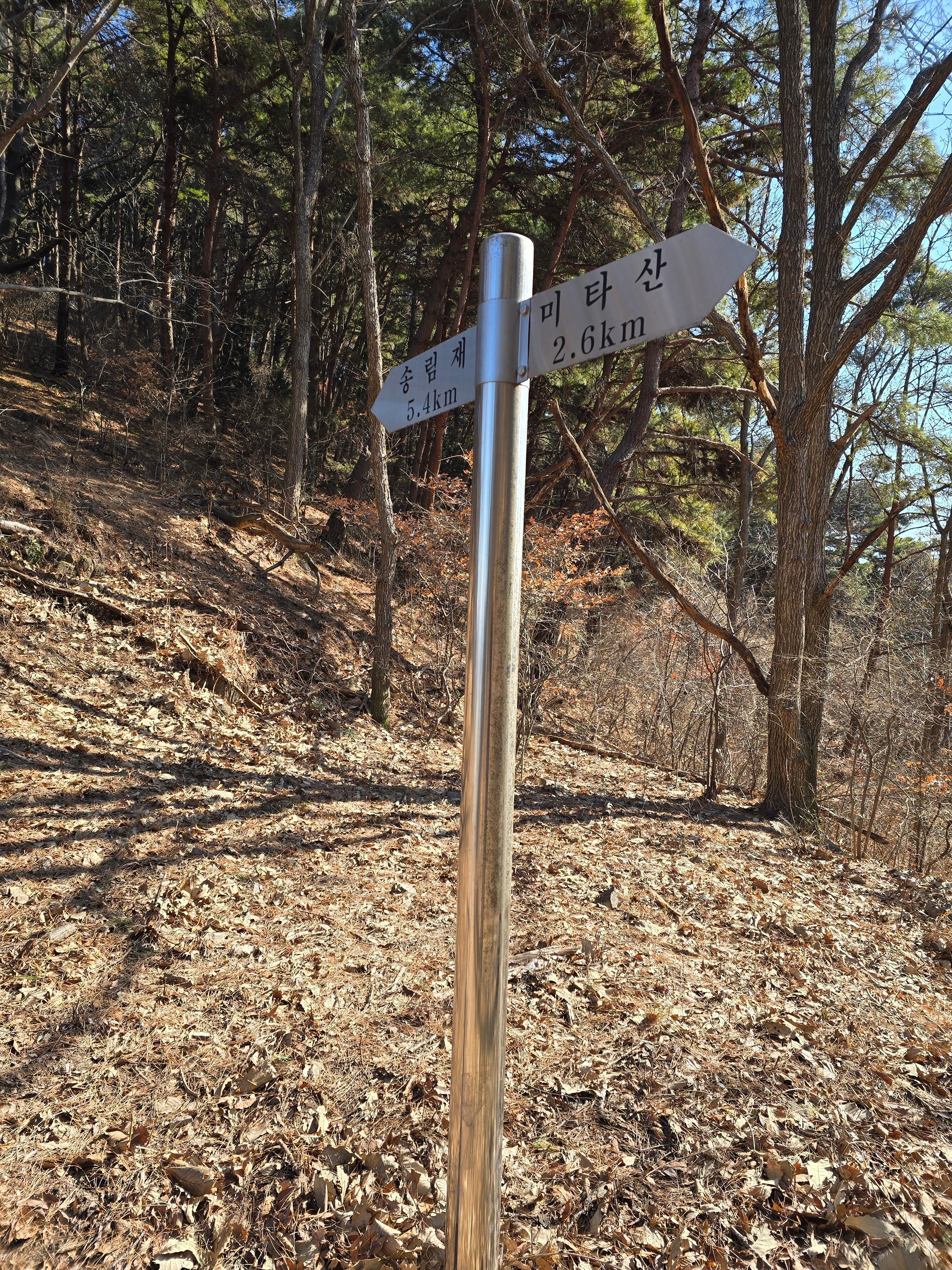 편안한 능선을 타면 미타산을 표시한 두 번의 이정표를 통과해