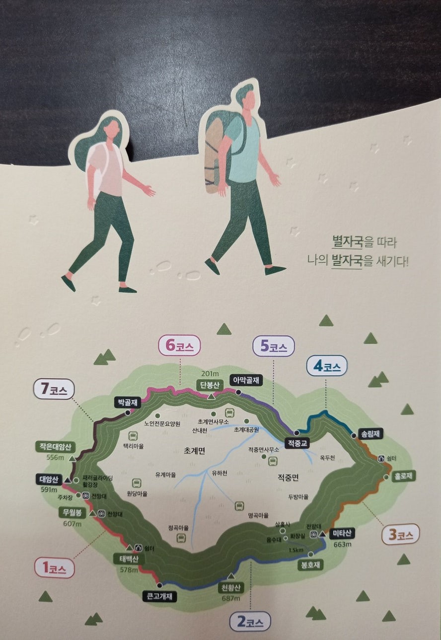 ① 큰고개~대암산~박골재와 ② 박골재~단봉산~송림재 구간을 각각 알렸다.