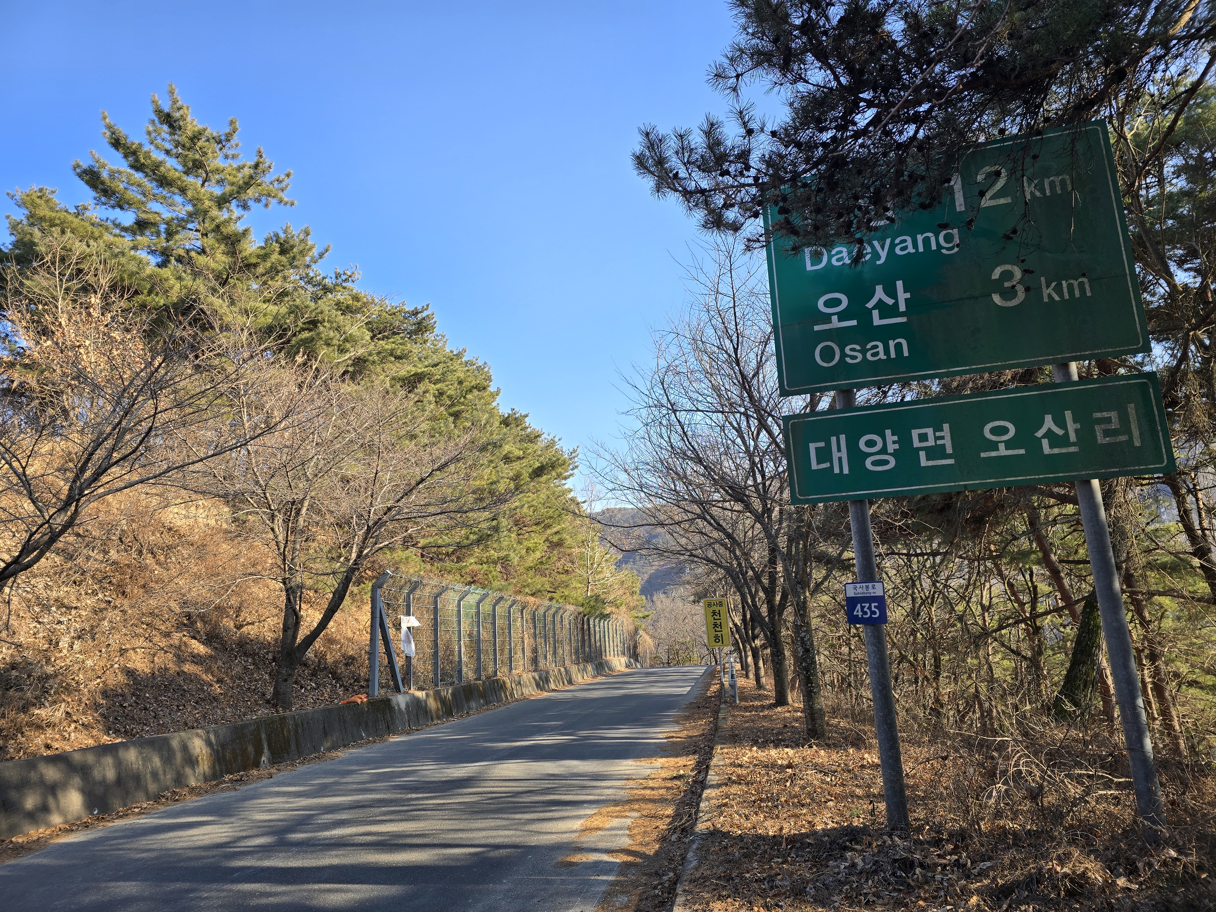 초계면 정곡리(초계 9km)와 대양면 오산 3km(대양 12km)란 표지판이 있지만,