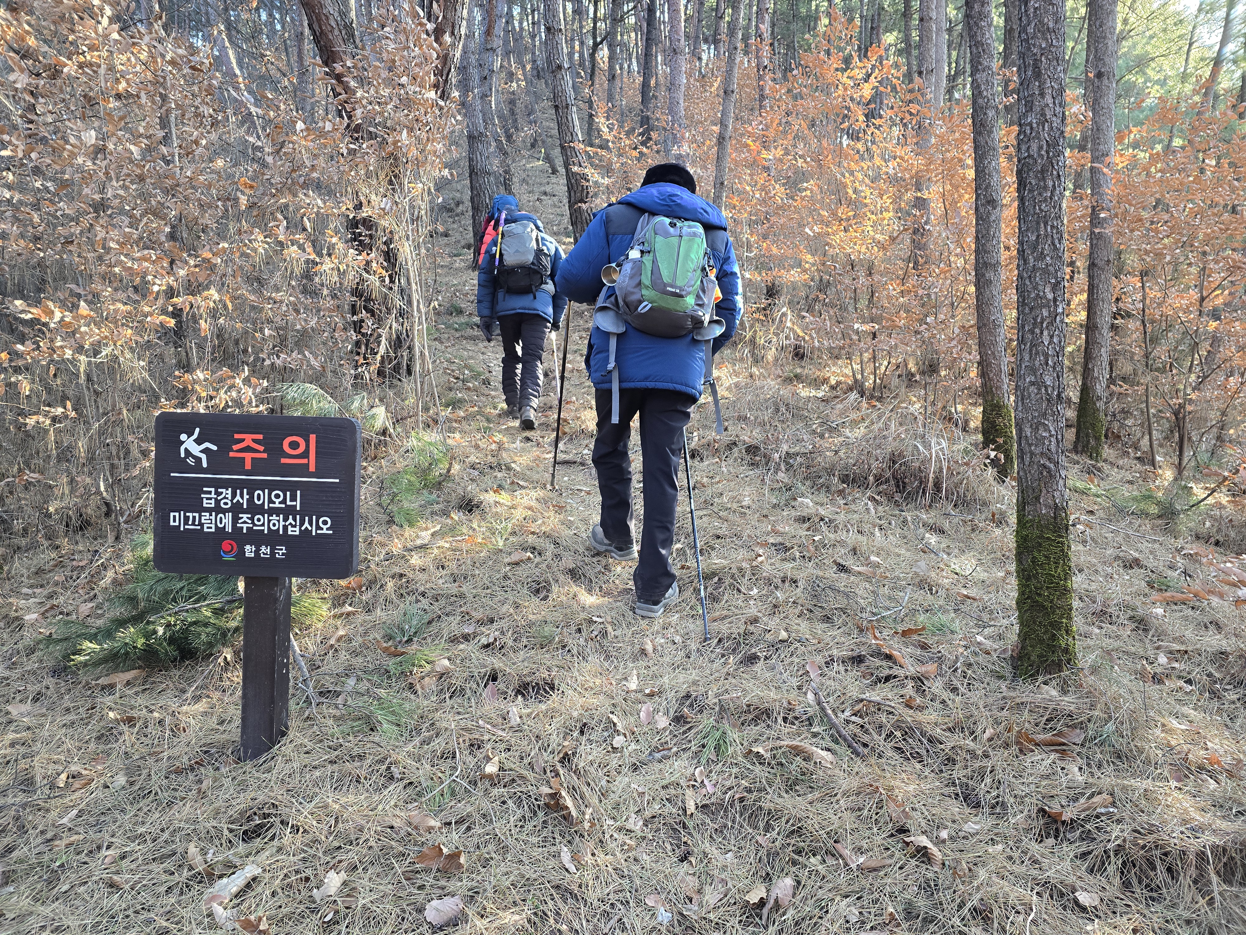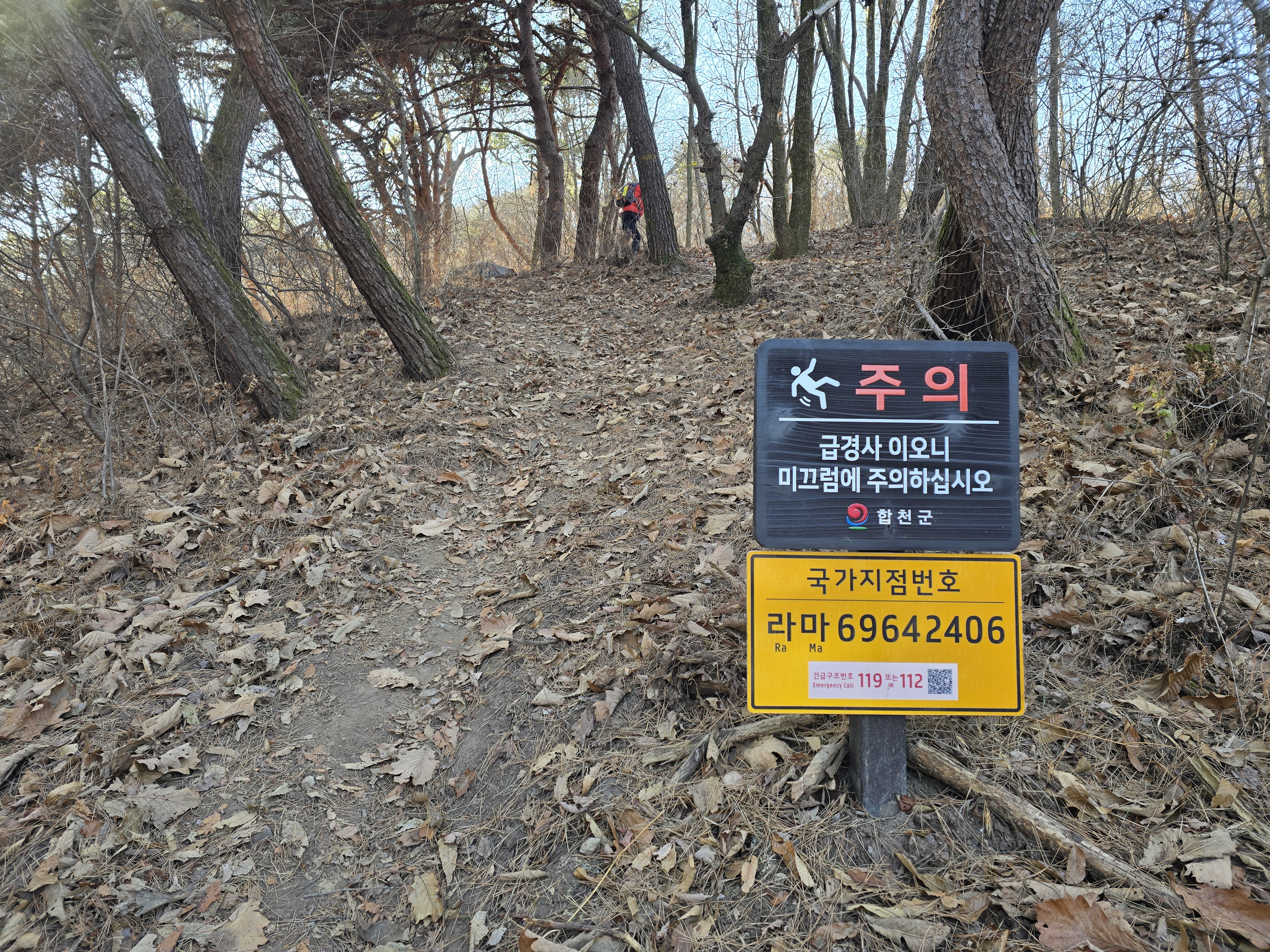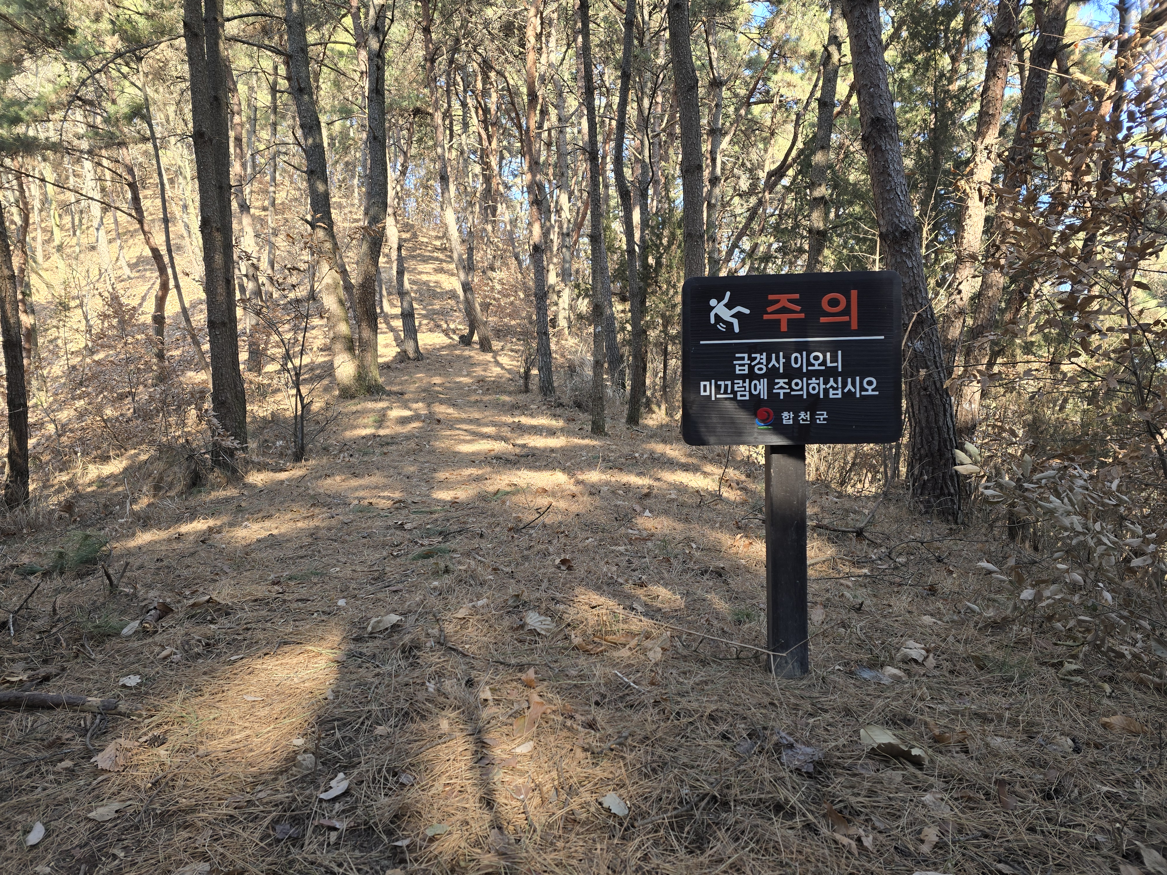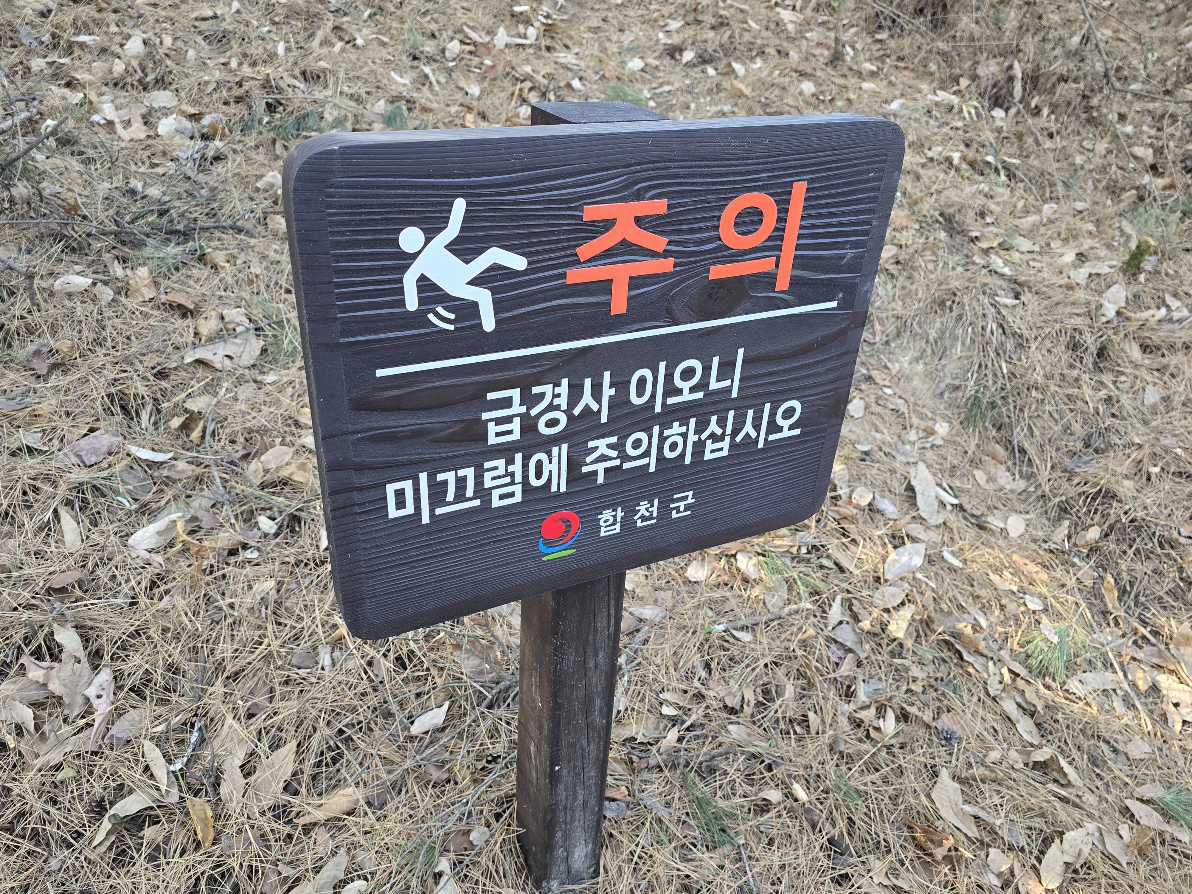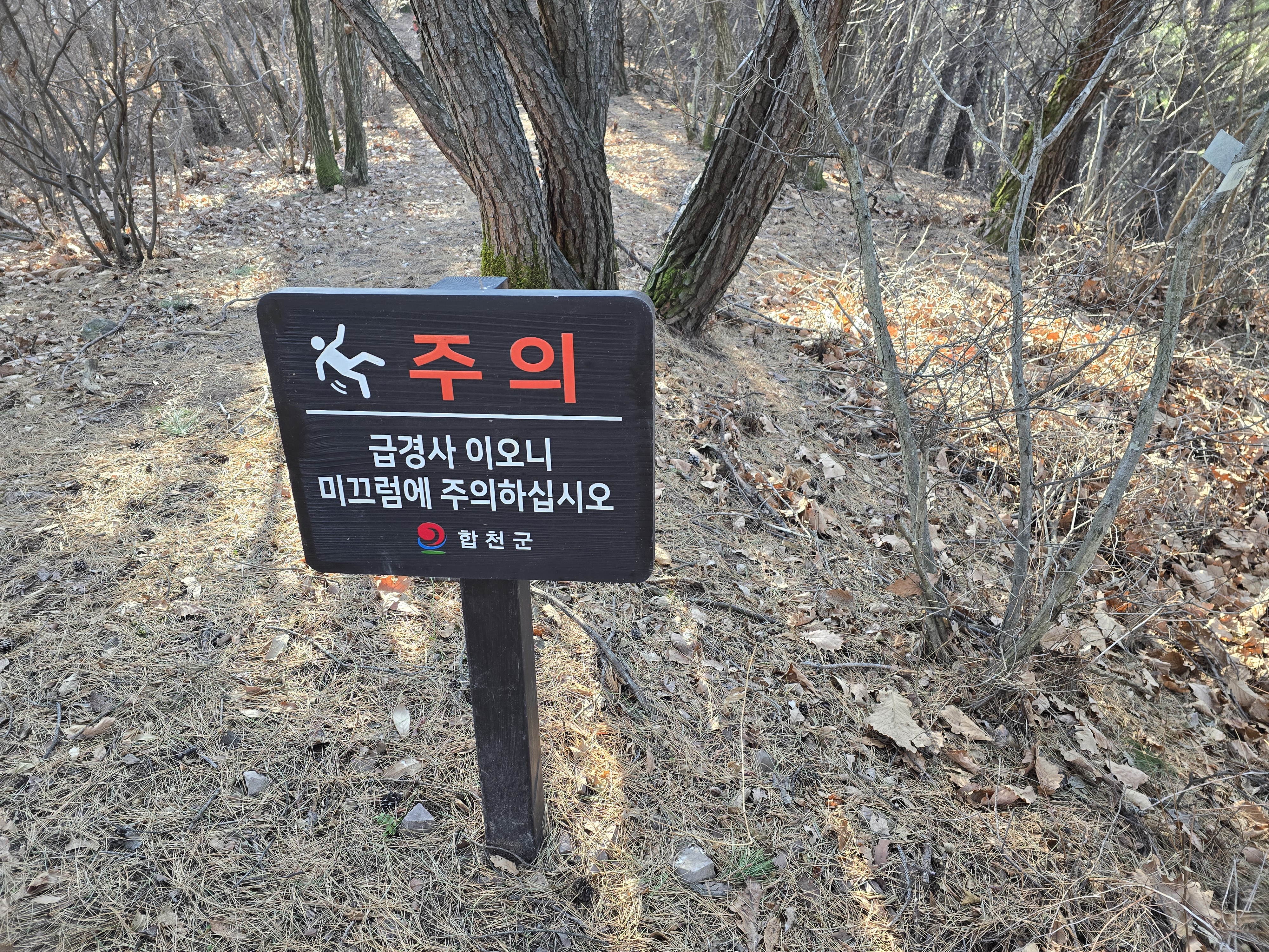 ‘급경사 미끄럼 주의’ 팻말이 있다.