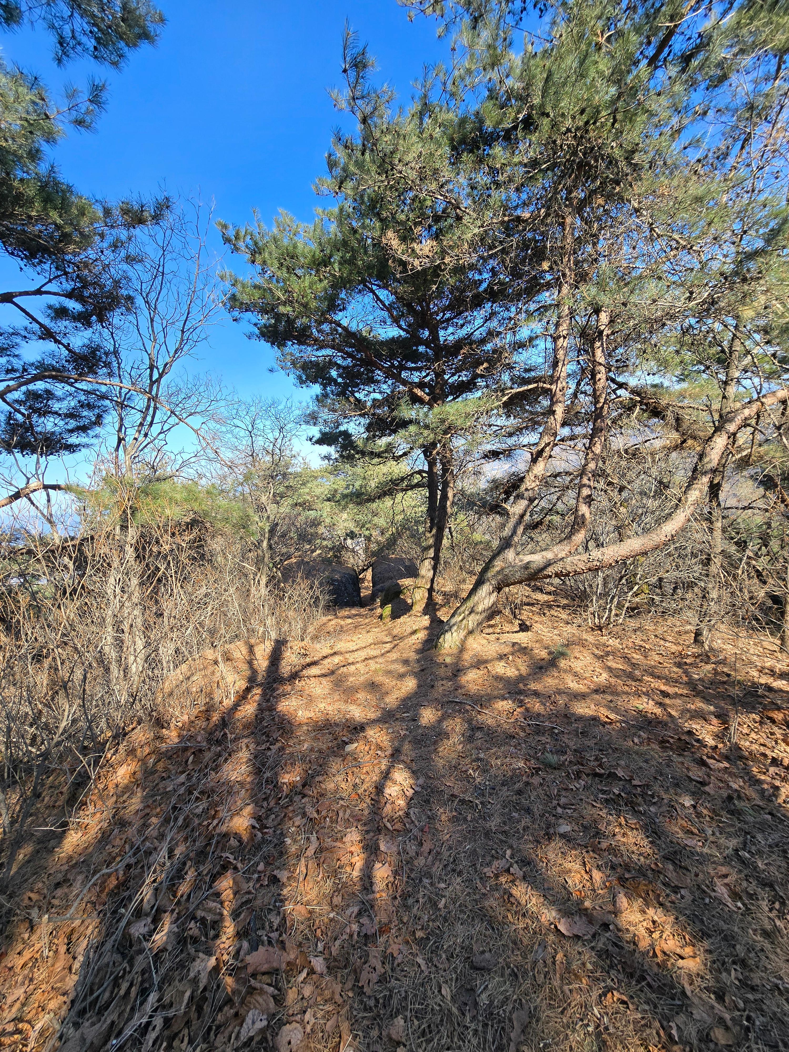 울창한 솔숲이 나오며 배씨 묘를 거쳐 들머리에서 30분 남짓이면