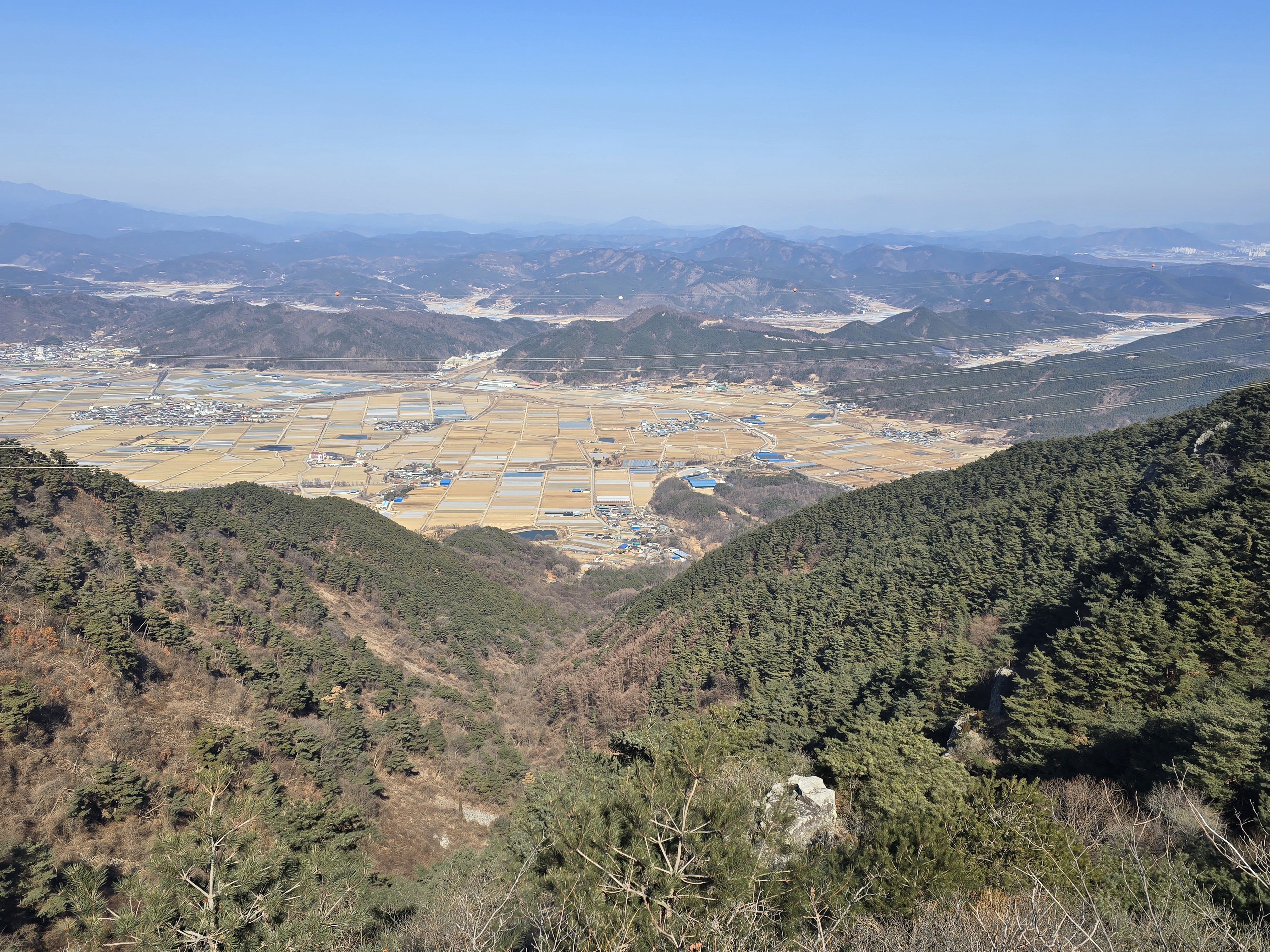 남동쪽에는 신반, 동쪽으로는 멀리 창녕, 서쪽으로는 천왕산(천황산)과 국사봉이 보인다.