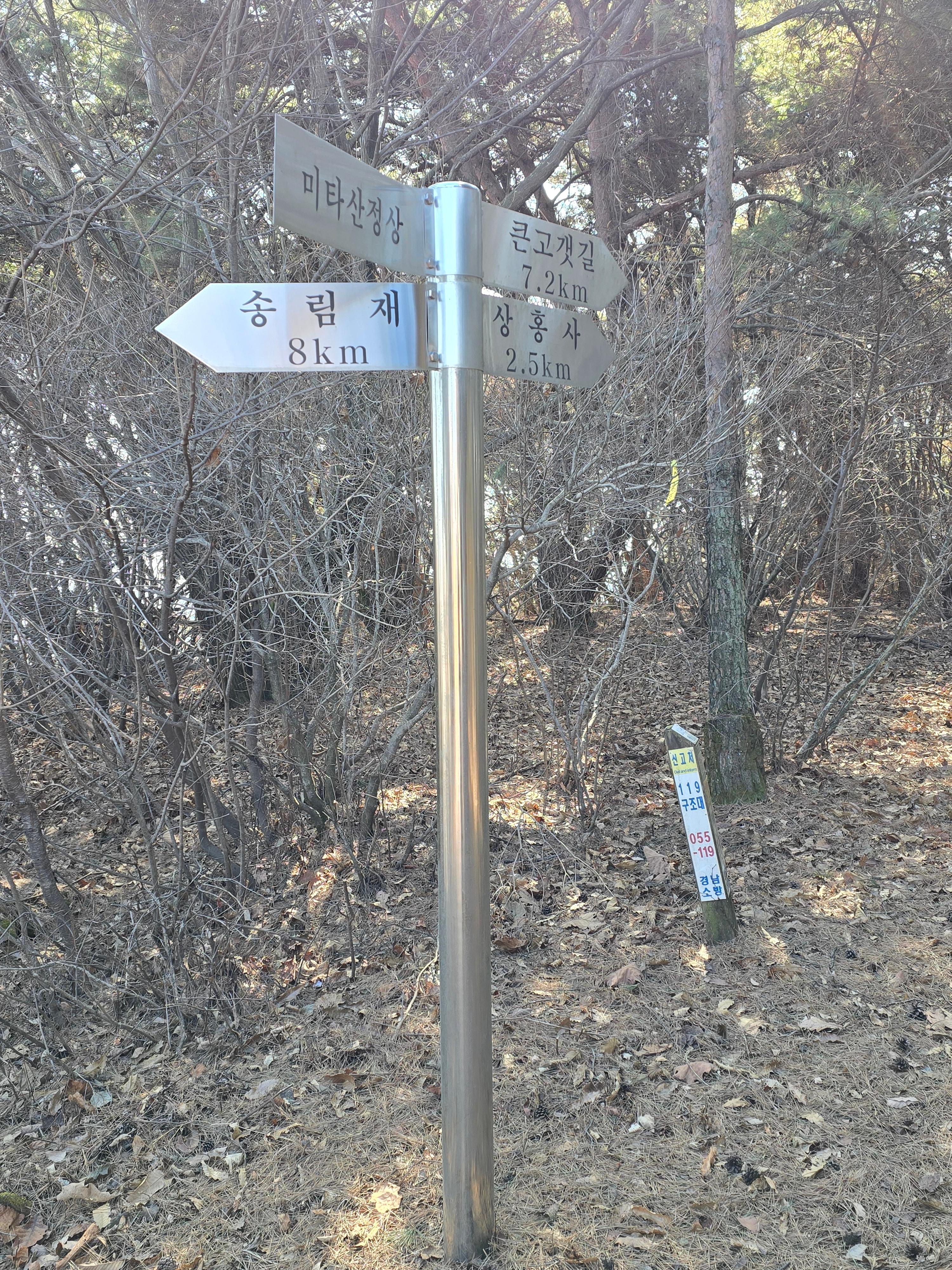 송림재-미타산과 마찬가지로 미타산-큰고개재 또한 옛 이정표는 거리가 맞지 않아,