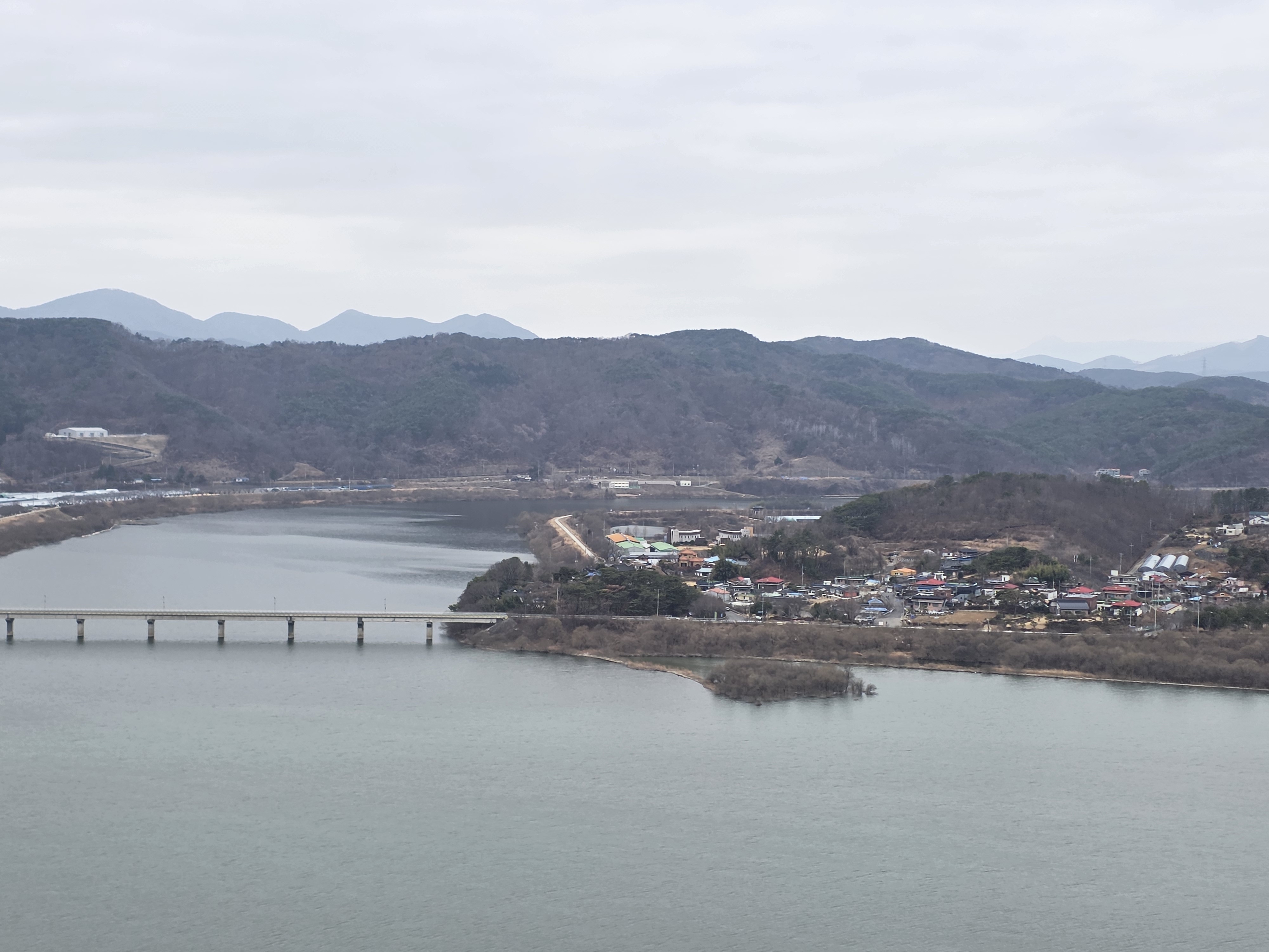 사천시 곤명면 정곡리와 금성리를 잇는 금성교에서 바라본 옥녀봉