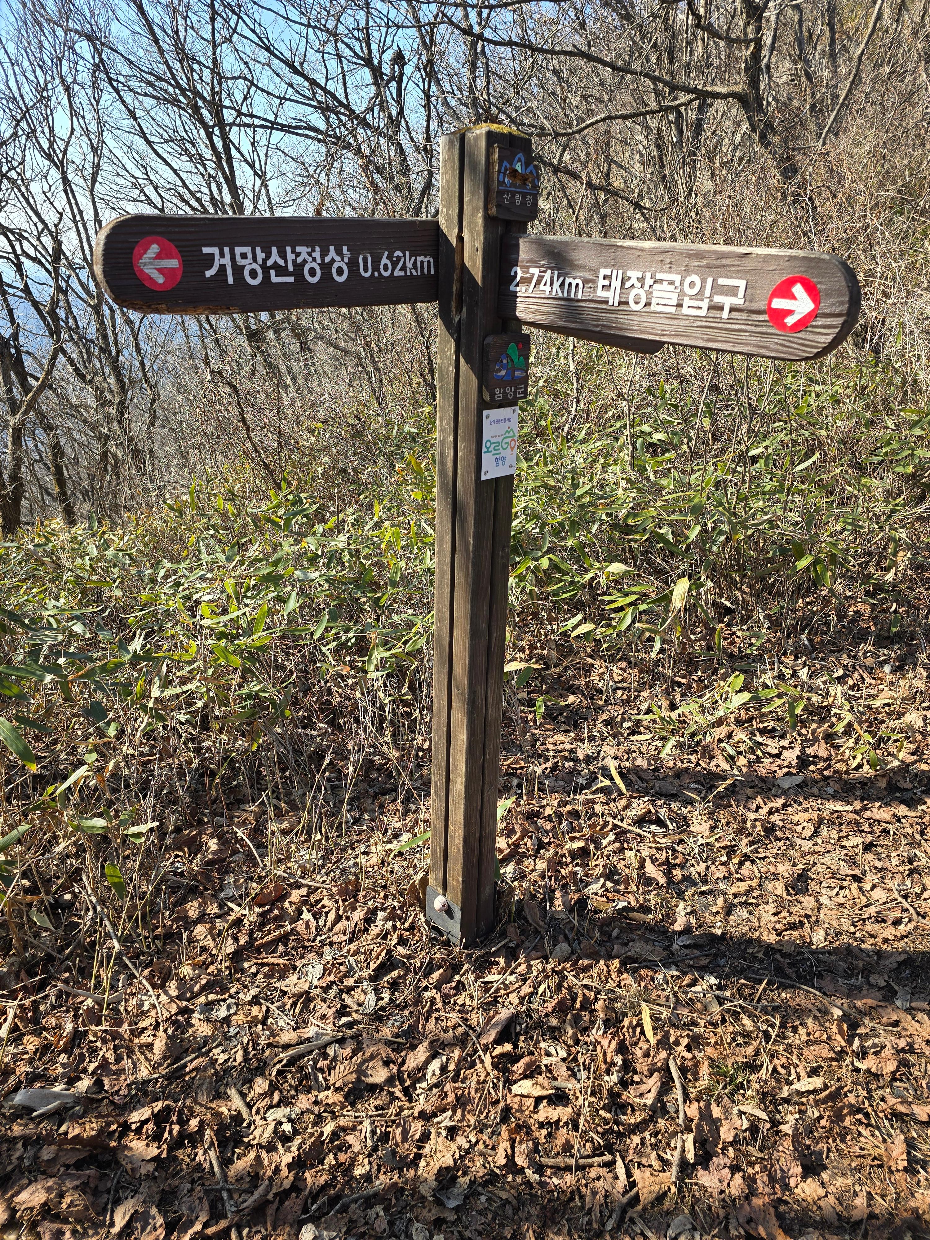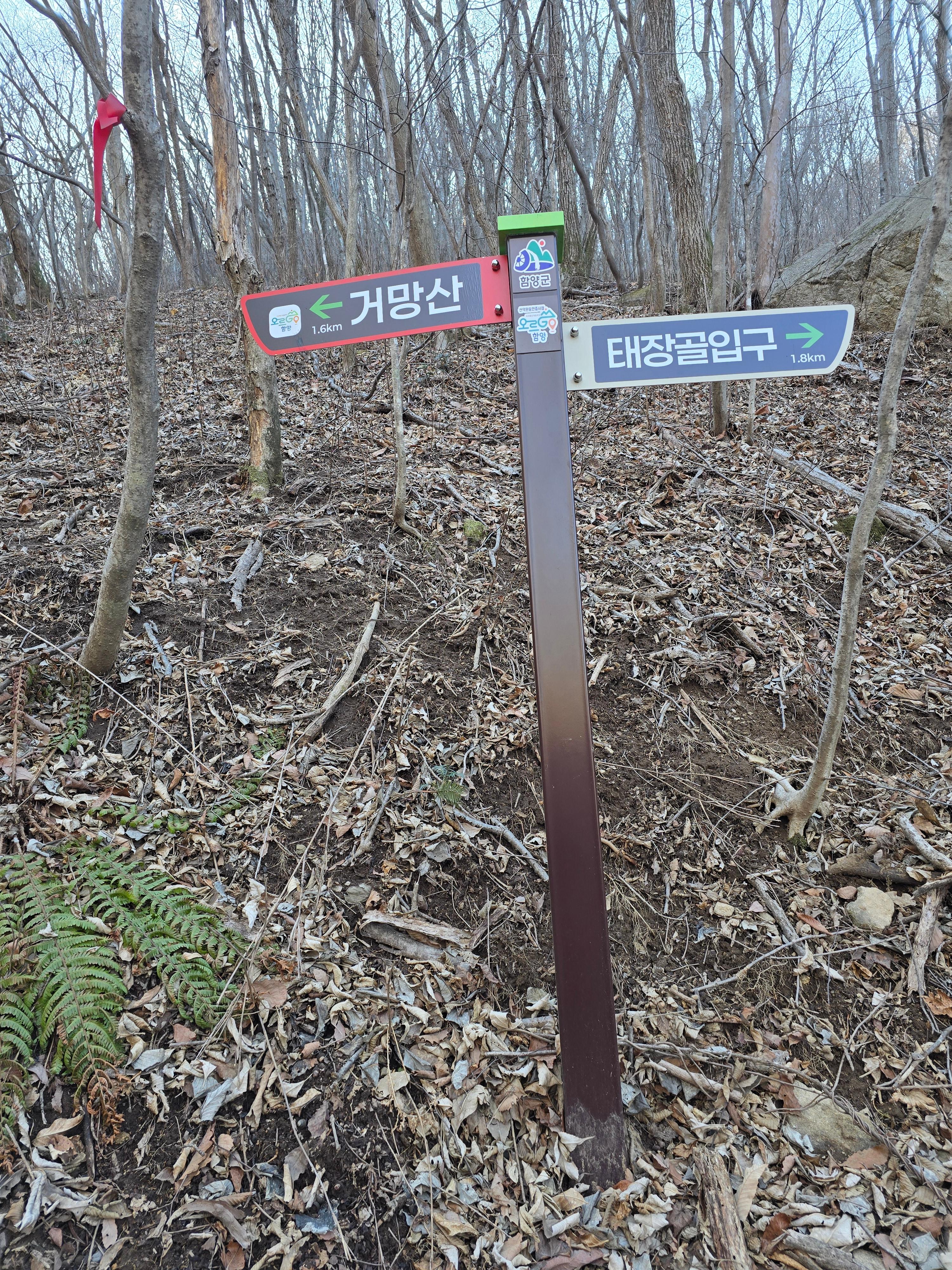 거망산 1.6km · 태장골입구 1.8km를 가리키고