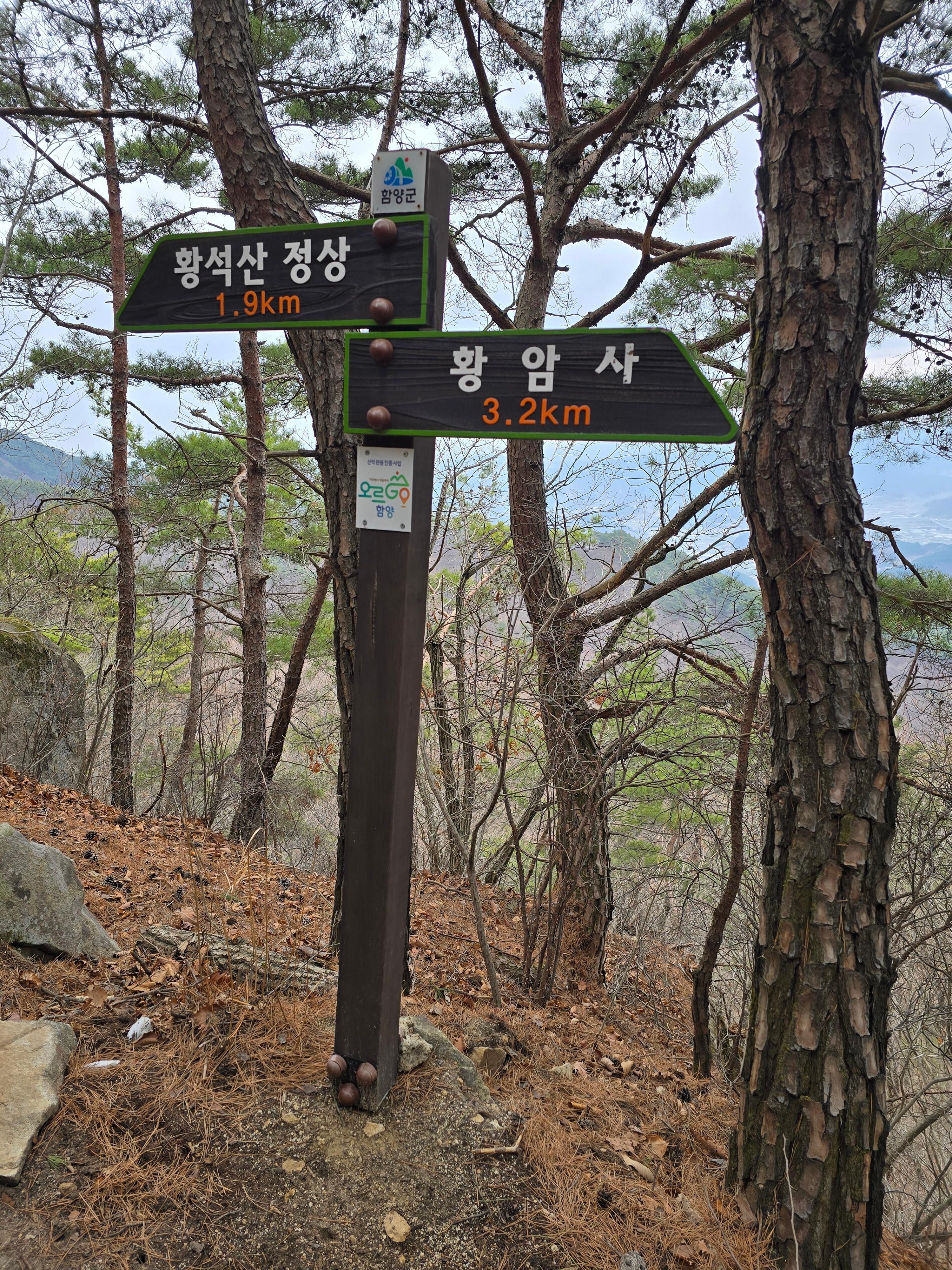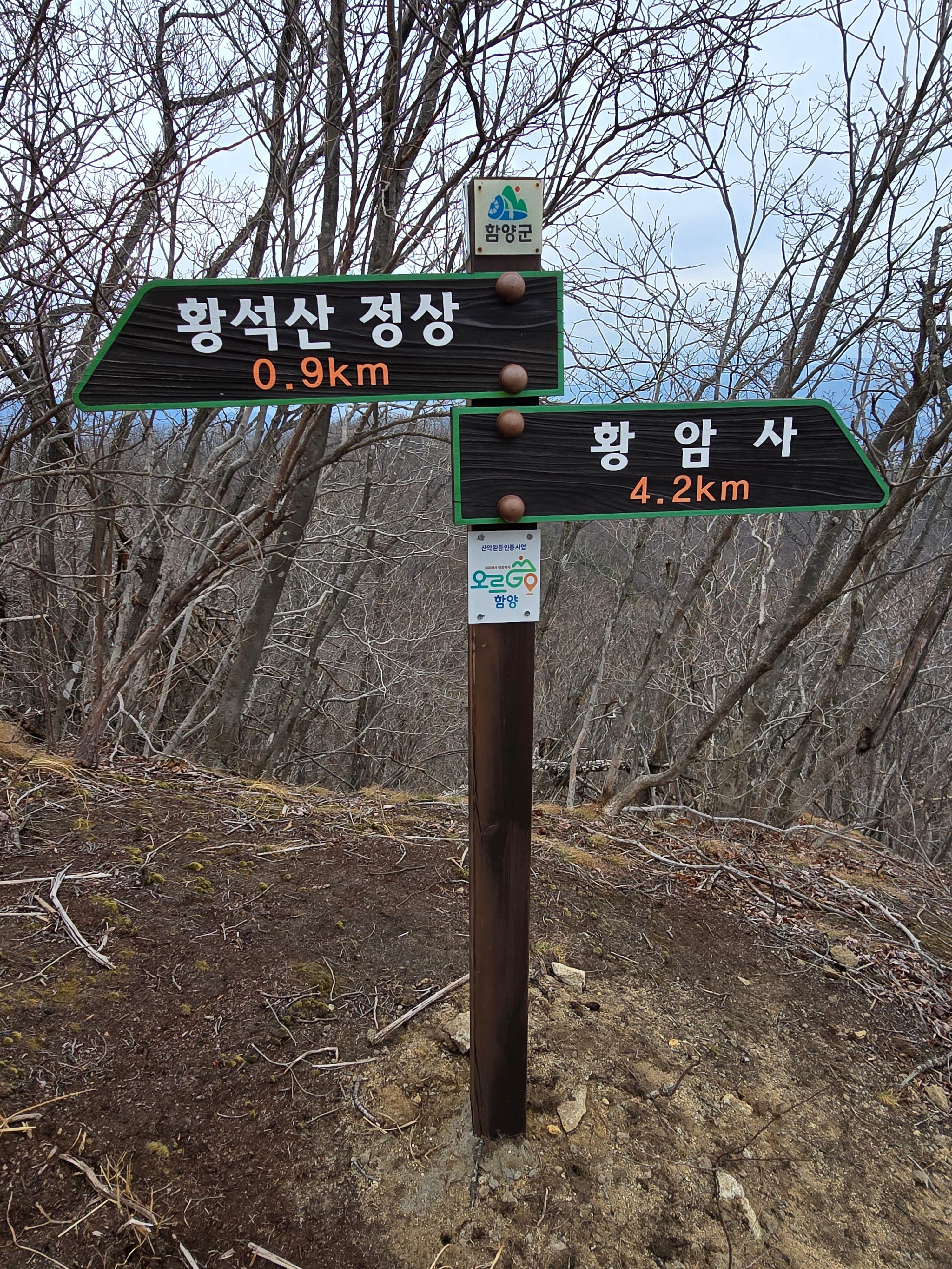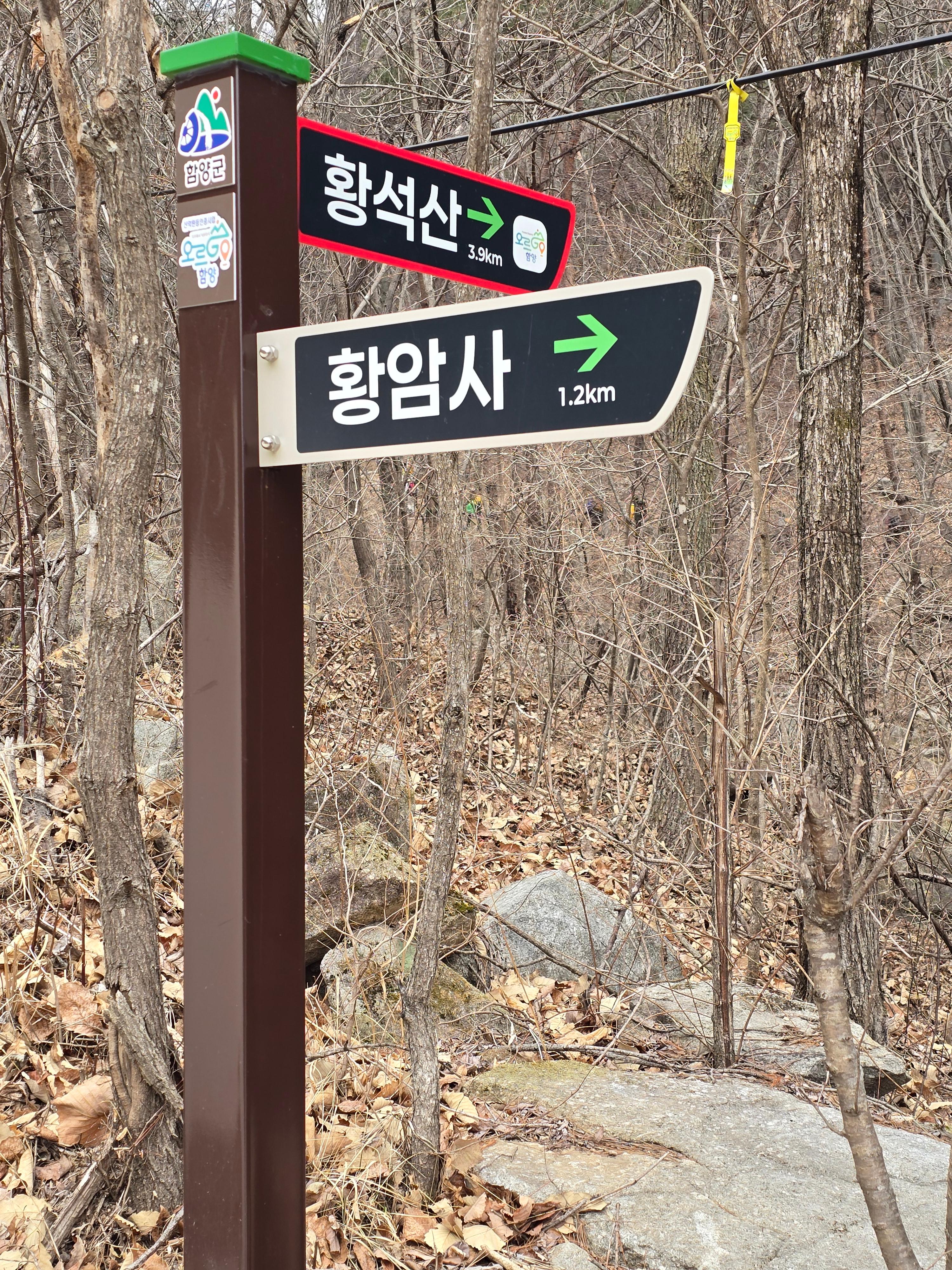 08:48 황석산 등산로 갈림길(황석산 3.9km · 황암사 1.2km)