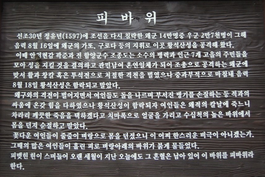대항하였으나, 중과부적(衆寡不敵)으로 마침내 음력 8월 18일 황석산성은
