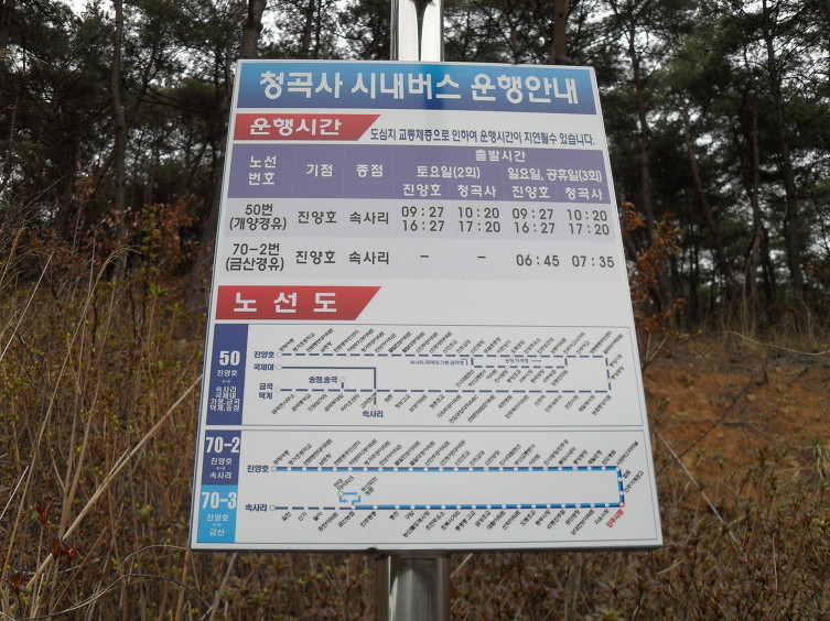 바로 밑의 쉼터가 있는 고개에선 여러 갈림길이 있는데, 청곡사로 가는 길과 성은암을 거쳐 중간