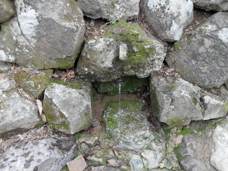 길가의 샘에서 대롱을 타고 물이 흘러나오는데, 마르기 일쑤인 이곳의 샘에 물이 나오는