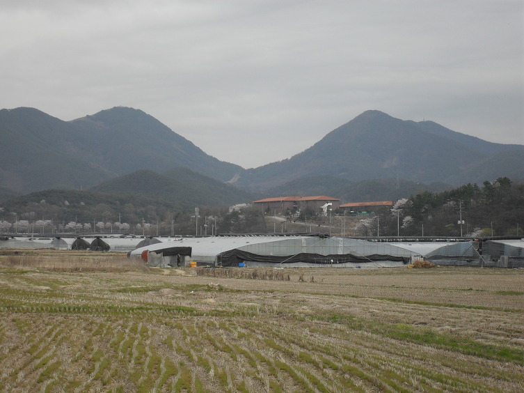 비닐하우스와 과수원이 많은 곳 도로변이 오늘 산행의 들머리이자 돌아올 곳이기도 한데,