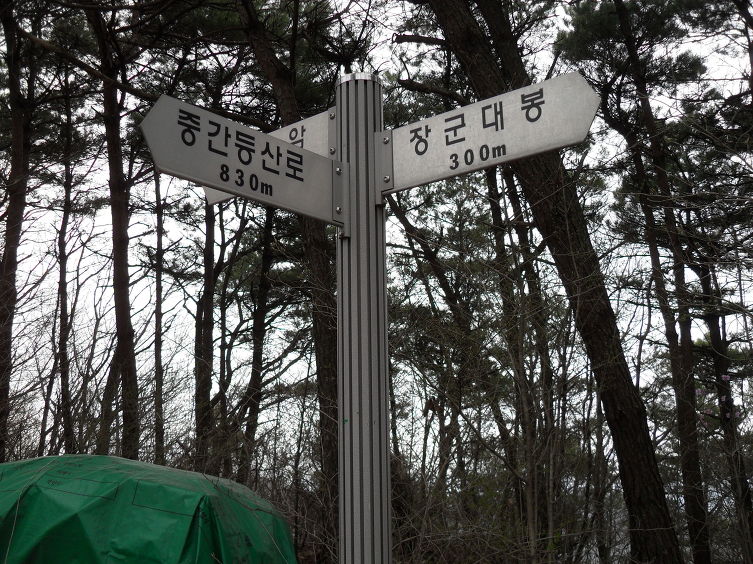 오르내림이 별로 없는 완만한 능선을 나아가 성은암 갈림길과 중간체육장고개 갈림길을 지나,