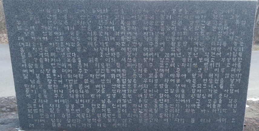 山을 위해 태어난 山사람 宇天 許萬壽 追募碑(우천 허만수 추모비)