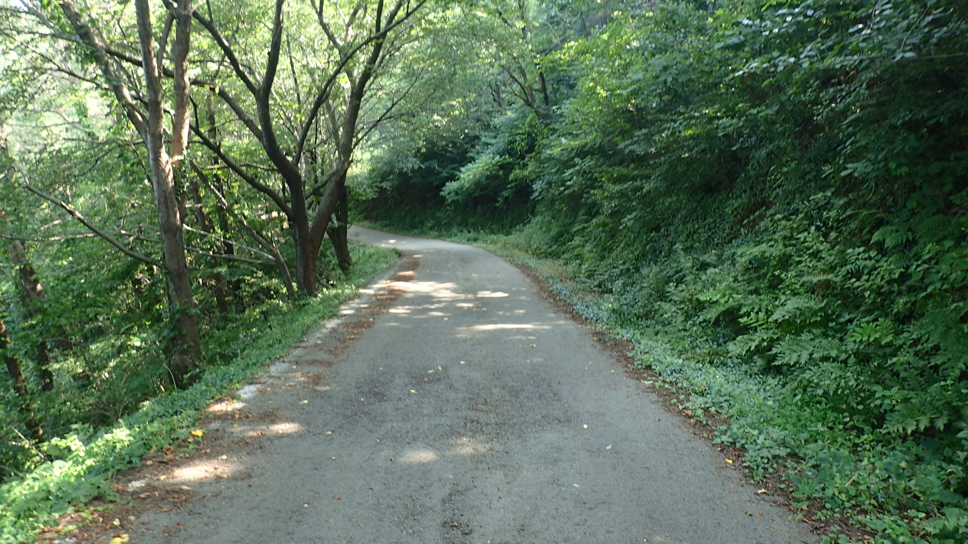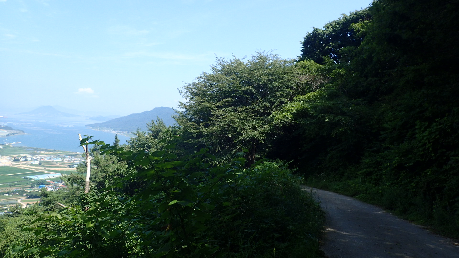 포장임도가 크게 커브를 그리면서 내려가는데,