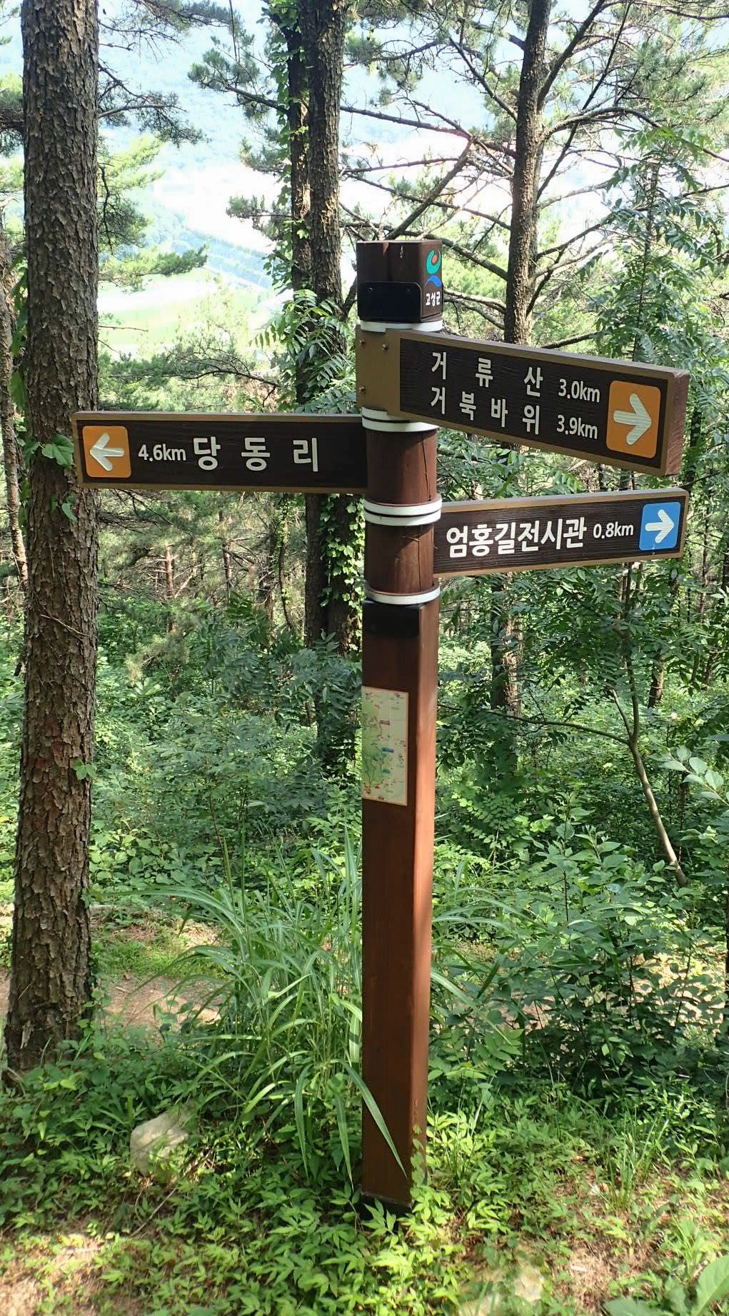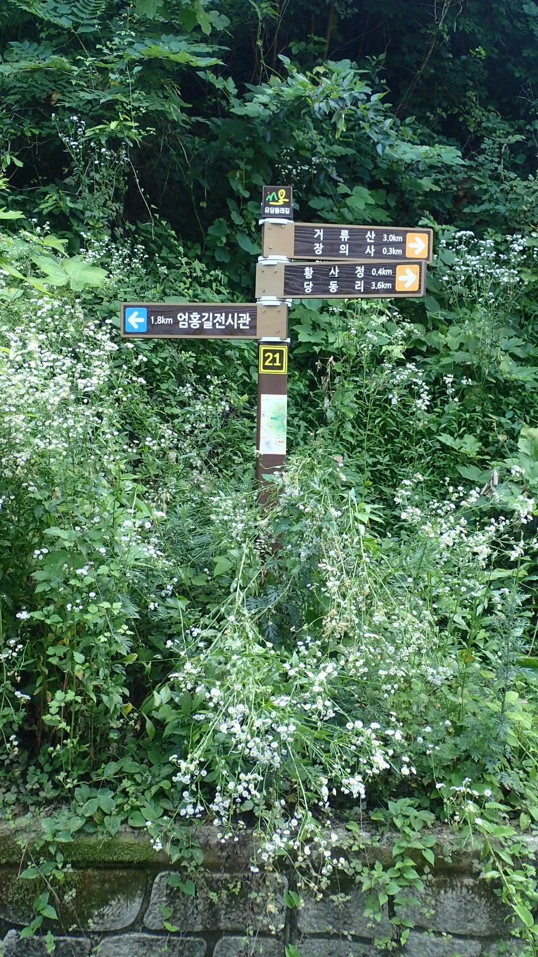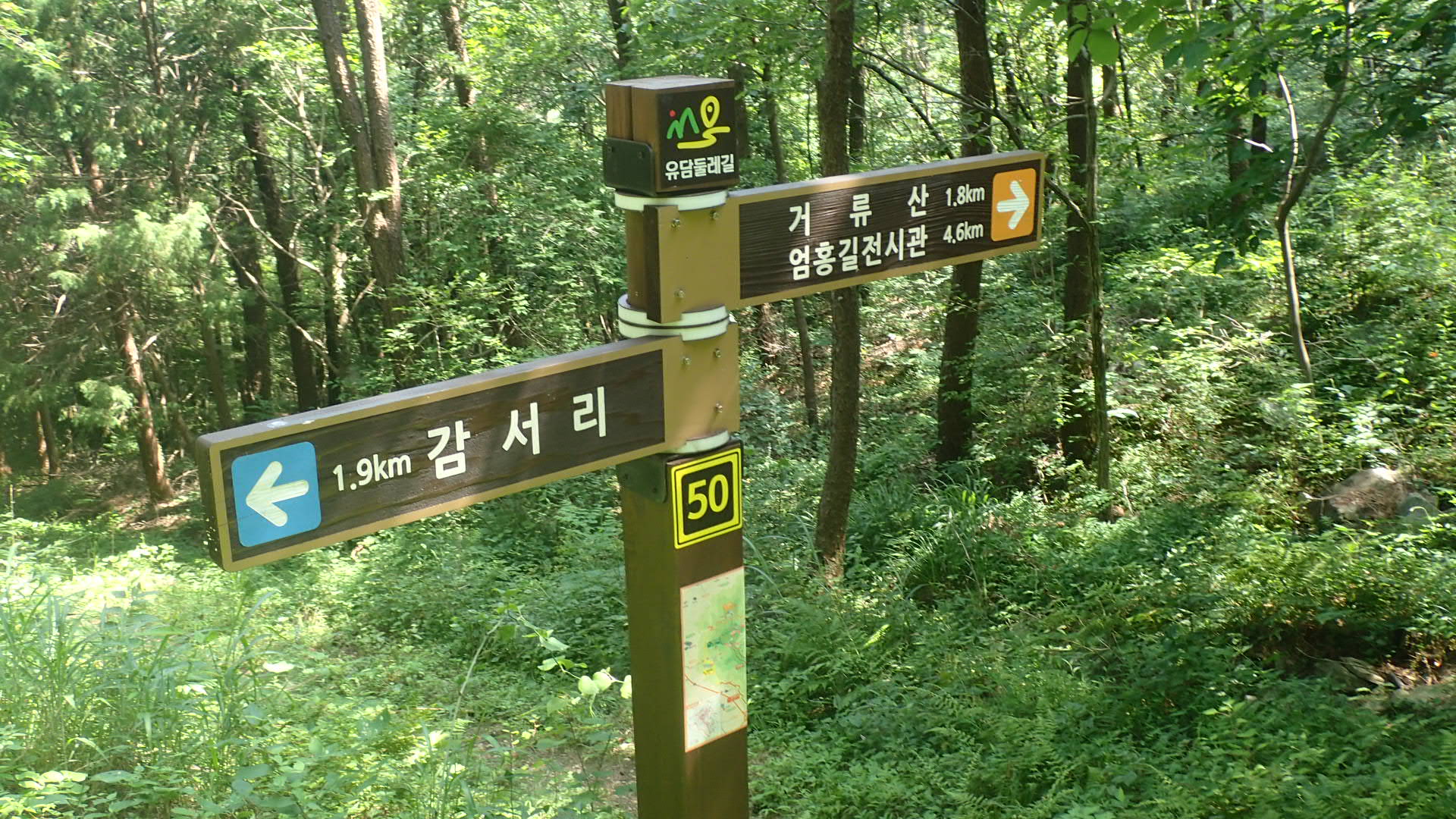 1.0km를 가리키는 거류산 아닌 감서리 쪽으로 나아가고