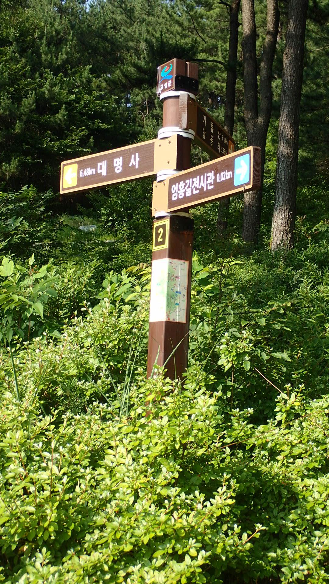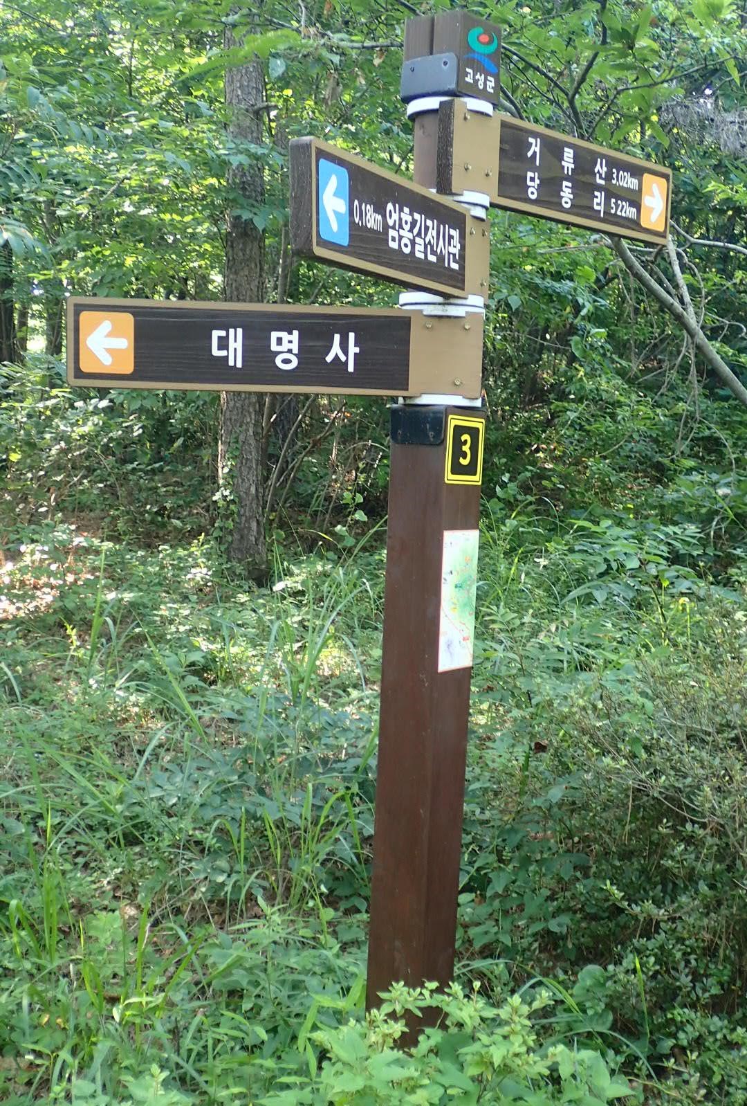 거류산 순환코스 NO.10 이정표(장의사 1.35km·거북바위 3.55km·