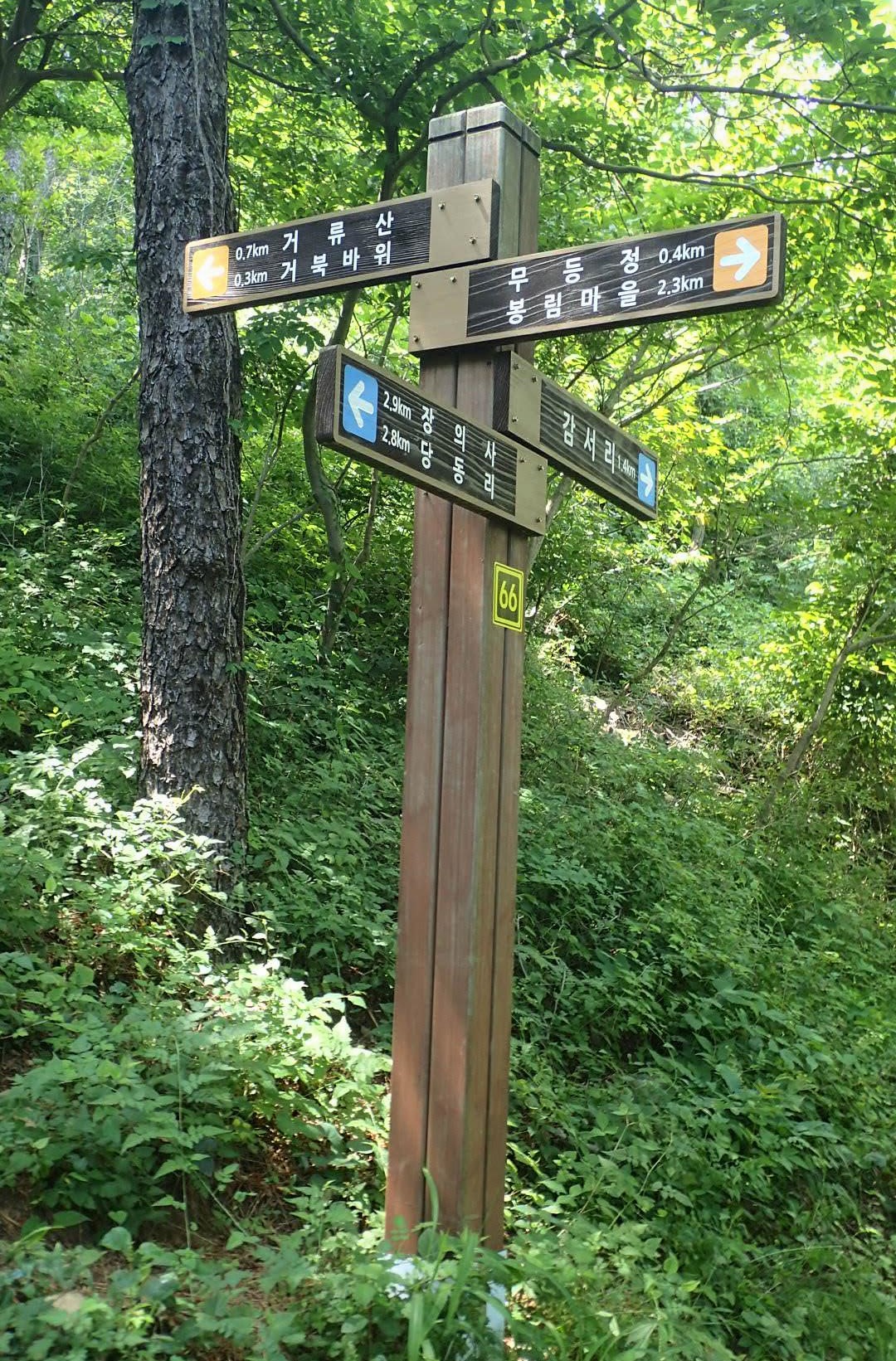 거북바위를 오른쪽으로 경유하여 거류산으로 올라가는 갈림길이며,