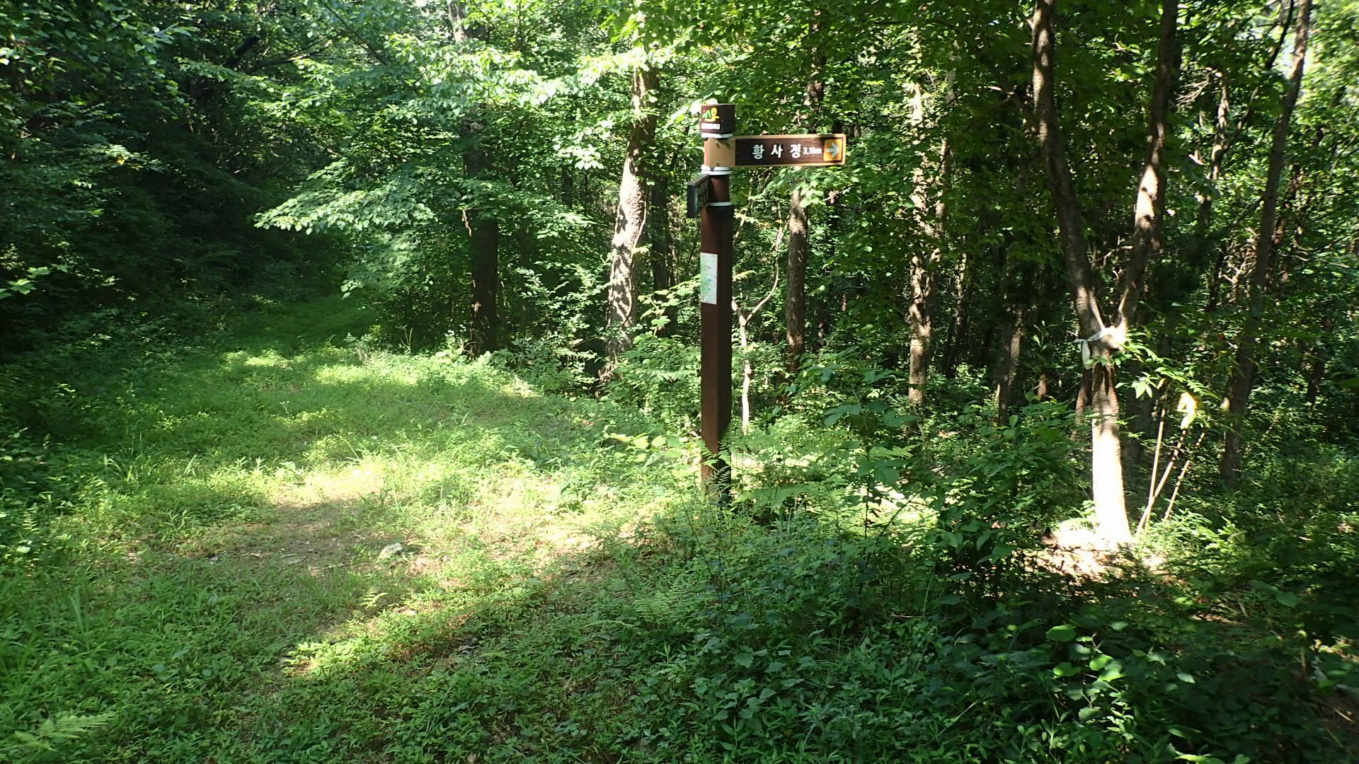 무등정과 당동리로 이어지는 포장임도로 올라서서 황사정 갈림길로 올라가고