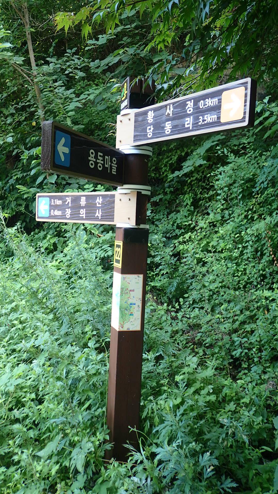거류산 3.1km·장의사 0.4km·황사정 0.3km·당동리 3.5km를 가리키는데,