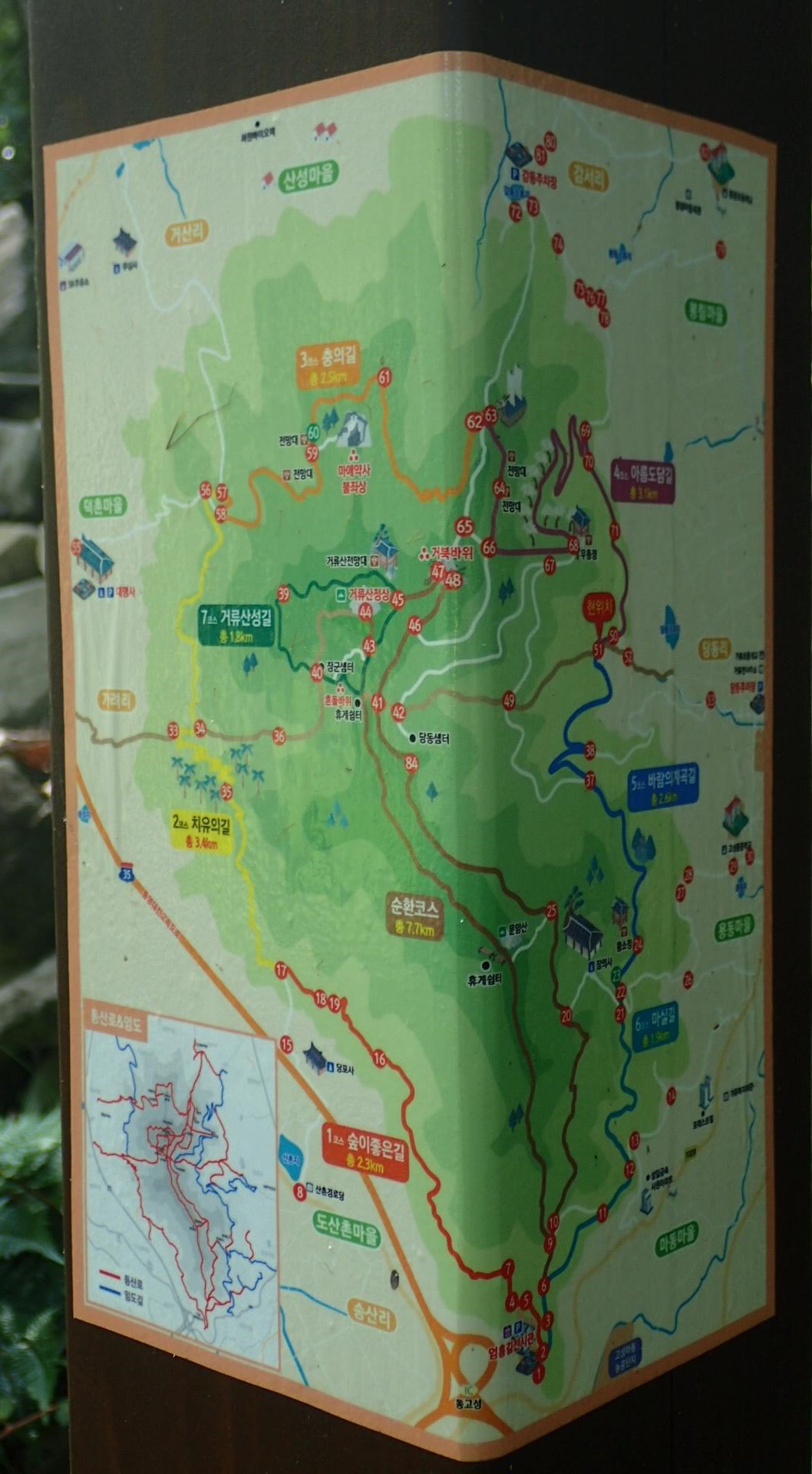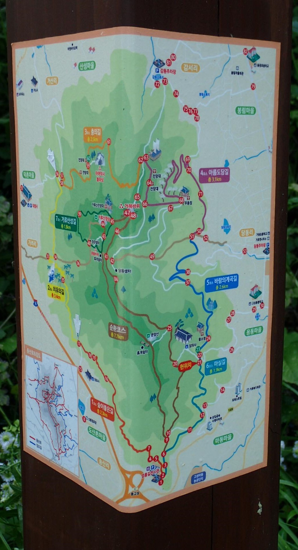 유담둘레길은 무등정과 봉림마을 쪽으로 내려가야 하고