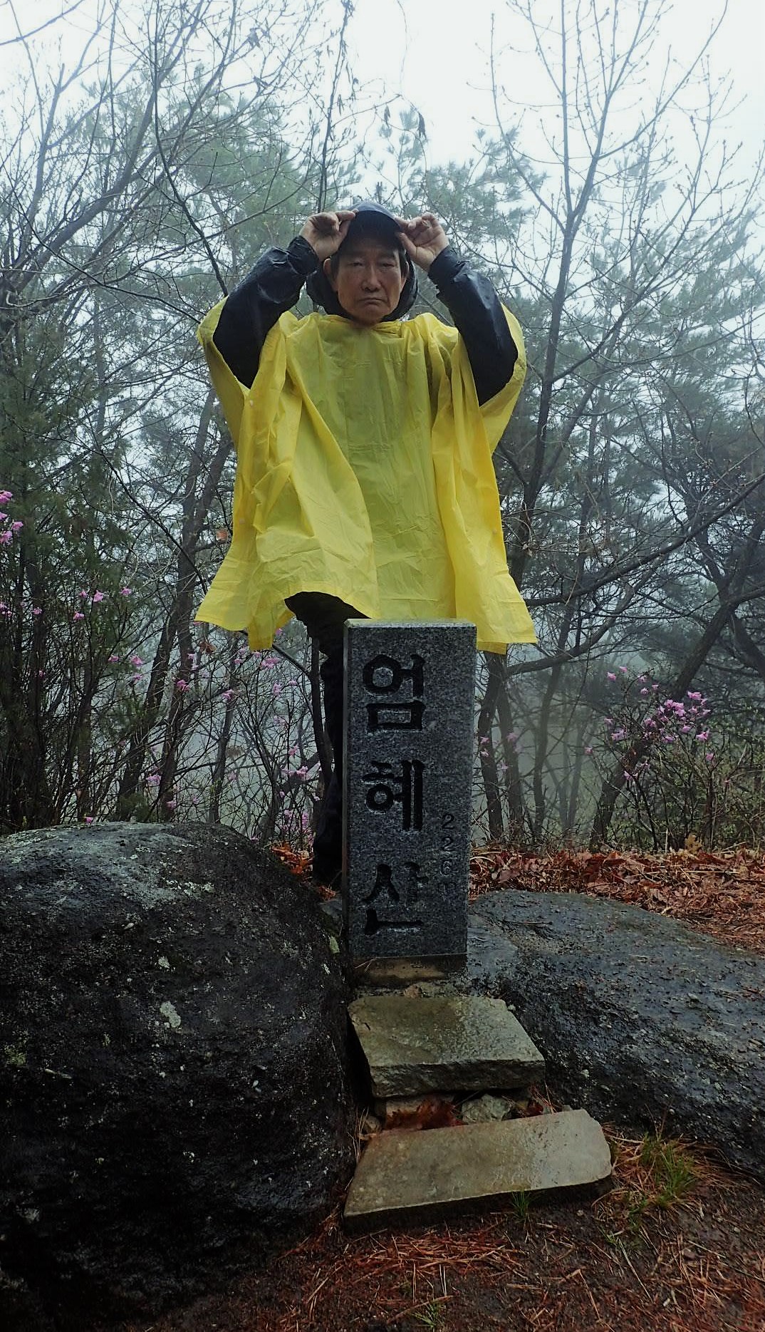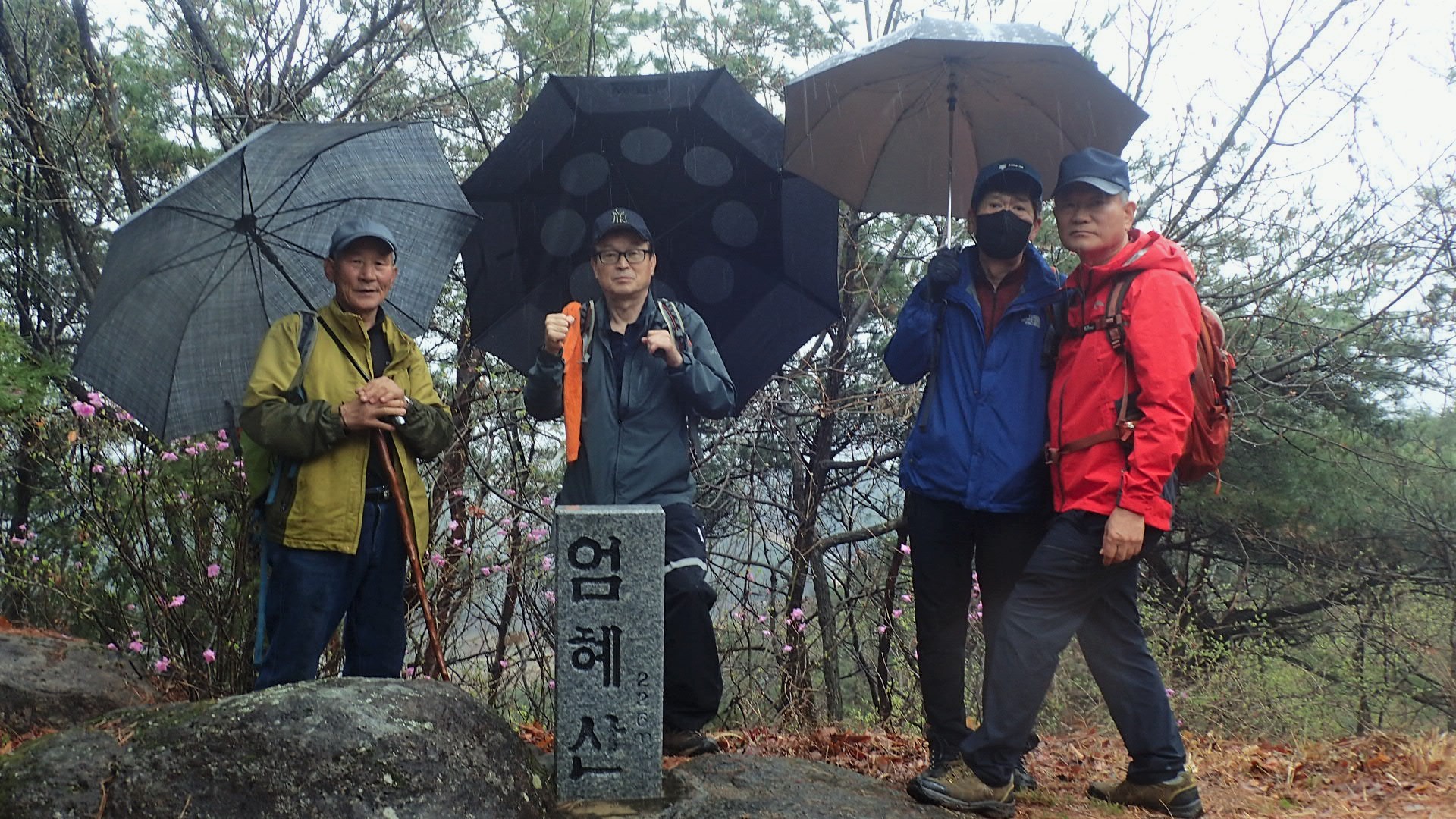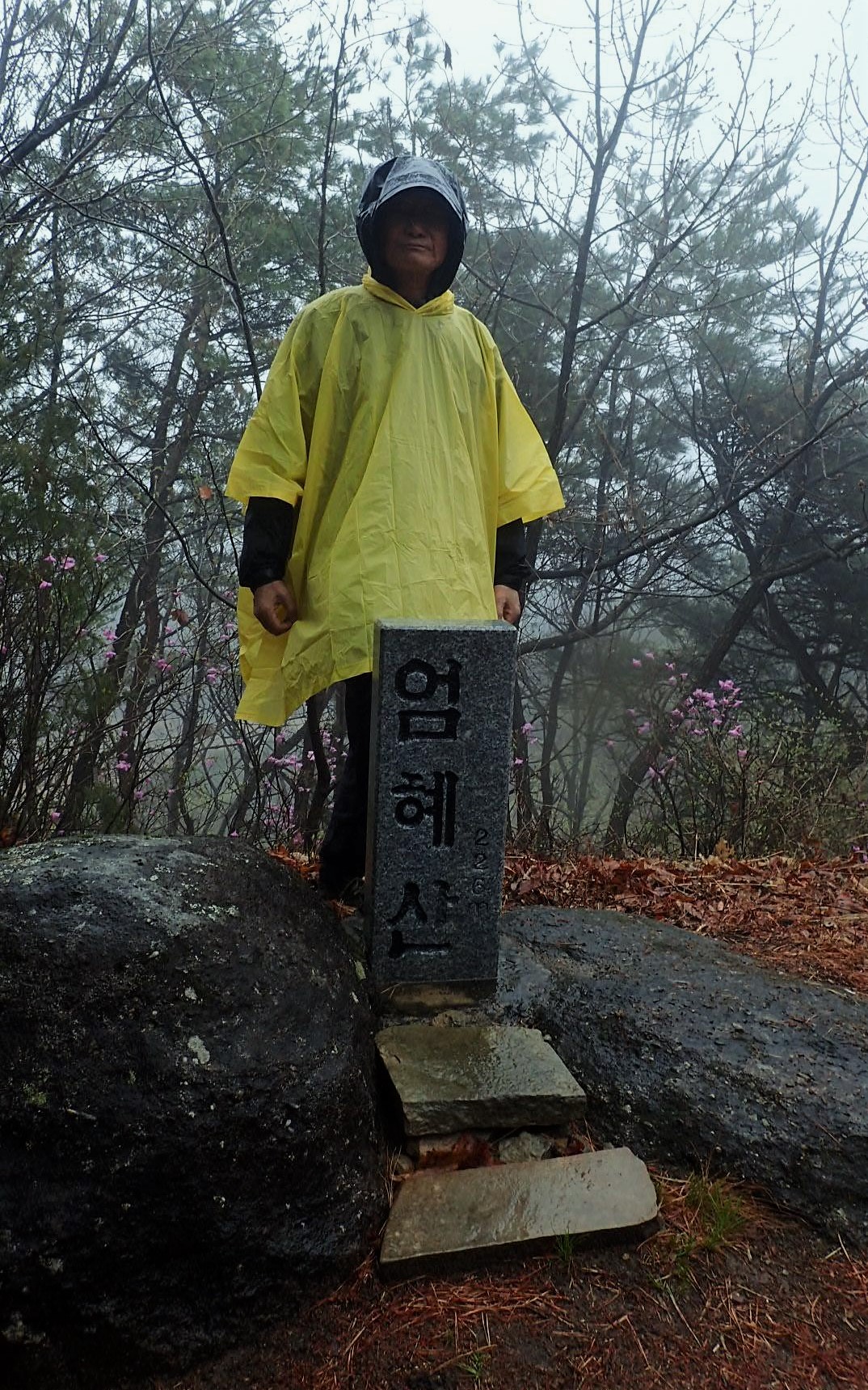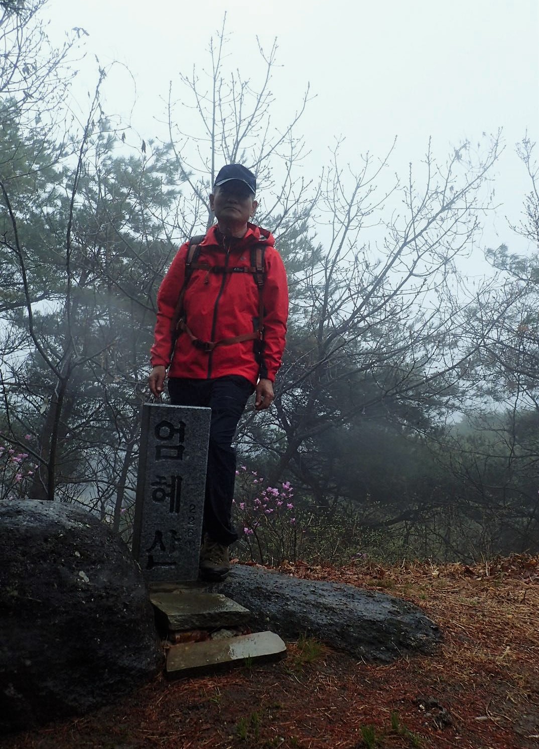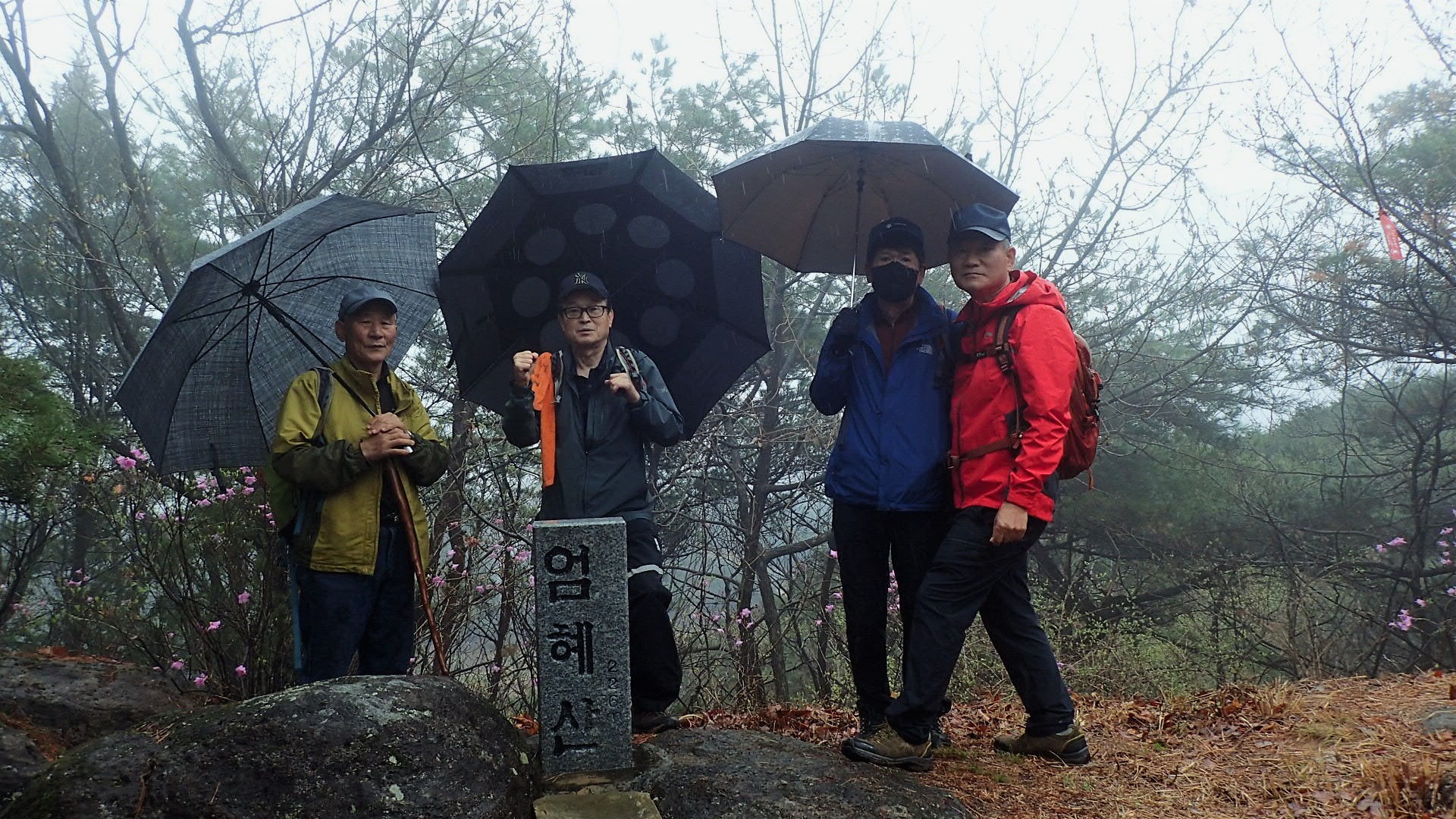 조금 더 내려서다 밋밋하게 치오르자 엄혜산 정상석이 서 있거늘,