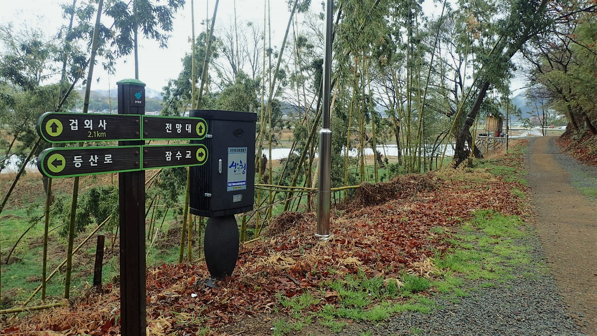 도내고개에서 포장도로를 따라 0.3km 떨어진 지점에서 새로운 수미산 등산로를 개설했다는 걸.