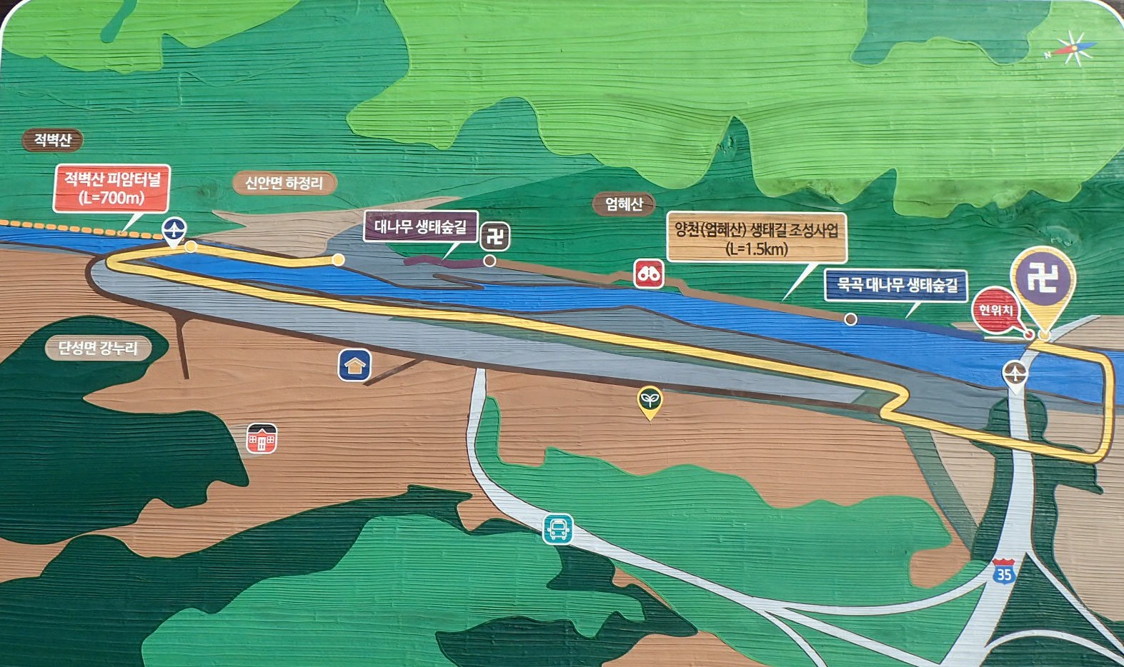 * 산 행 지 : 묵곡마을 - 엄혜산 - 도내고개 부근 포장도로 합류지점 - 토현교 - 법륜암 - 묵곡마을